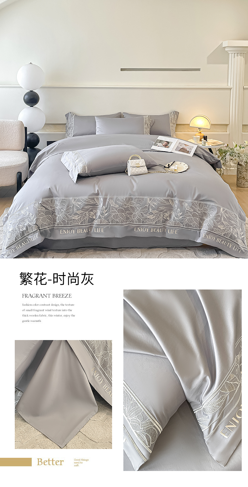 当前位置: 91家纺网 > 商品网购 > 床品套件 > 四件套 > 全棉普通四件套 > 慕色家纺 2024新款全棉刺绣四件套-繁花系列 繁花-时尚灰