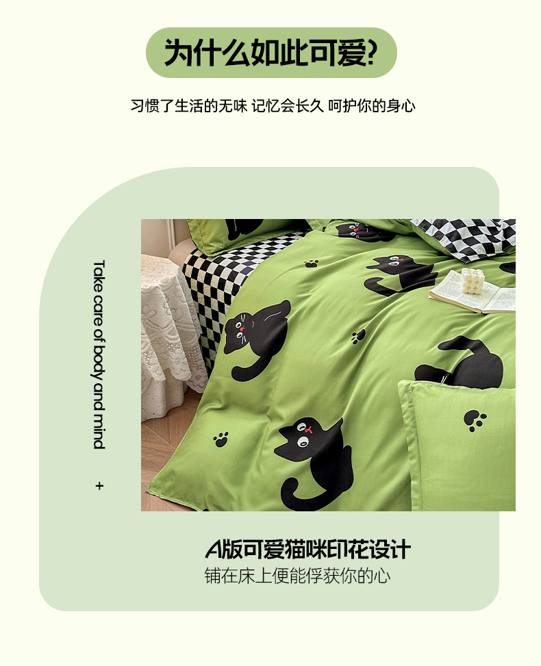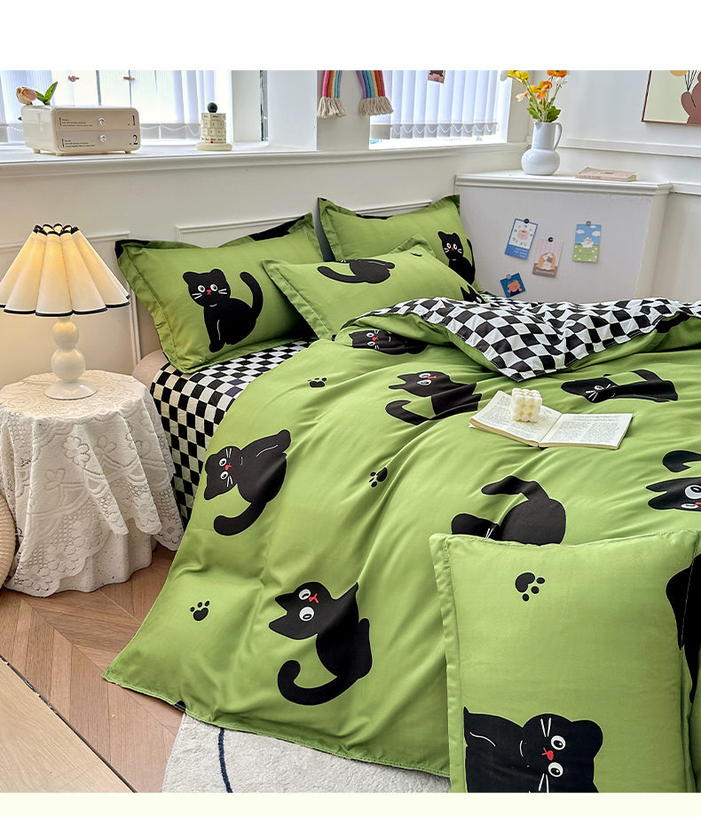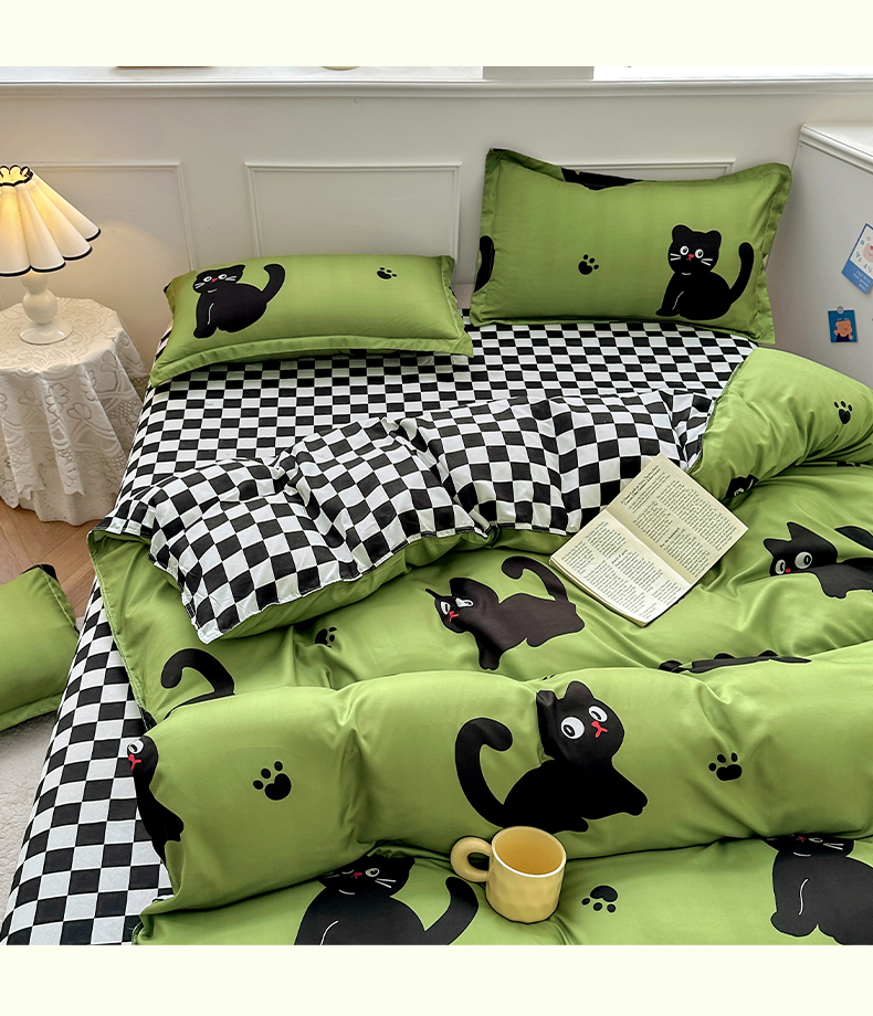 卡斯诺 2025新款芦荟棉四件套7月新花型 喵星人
