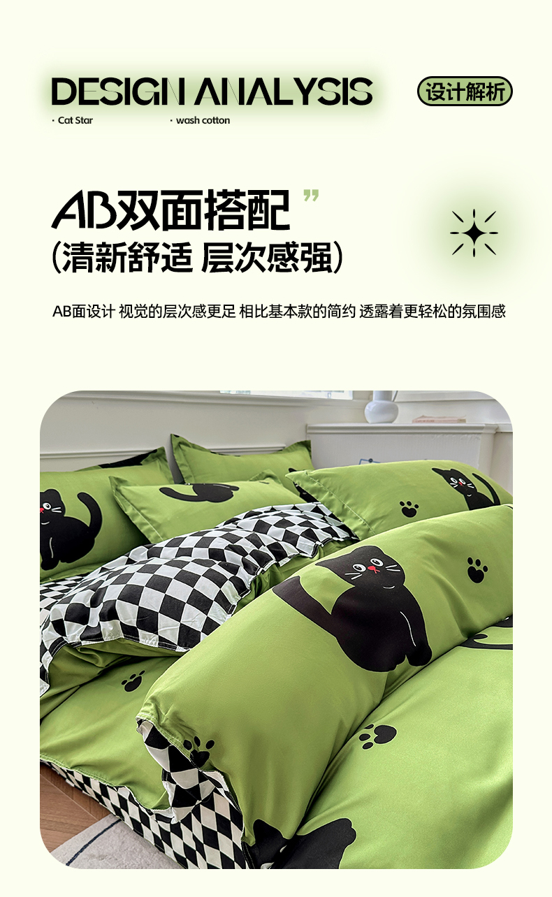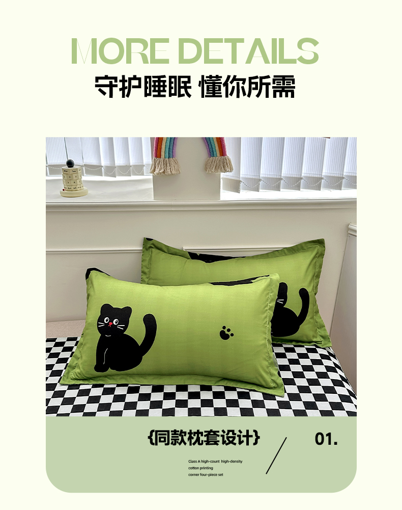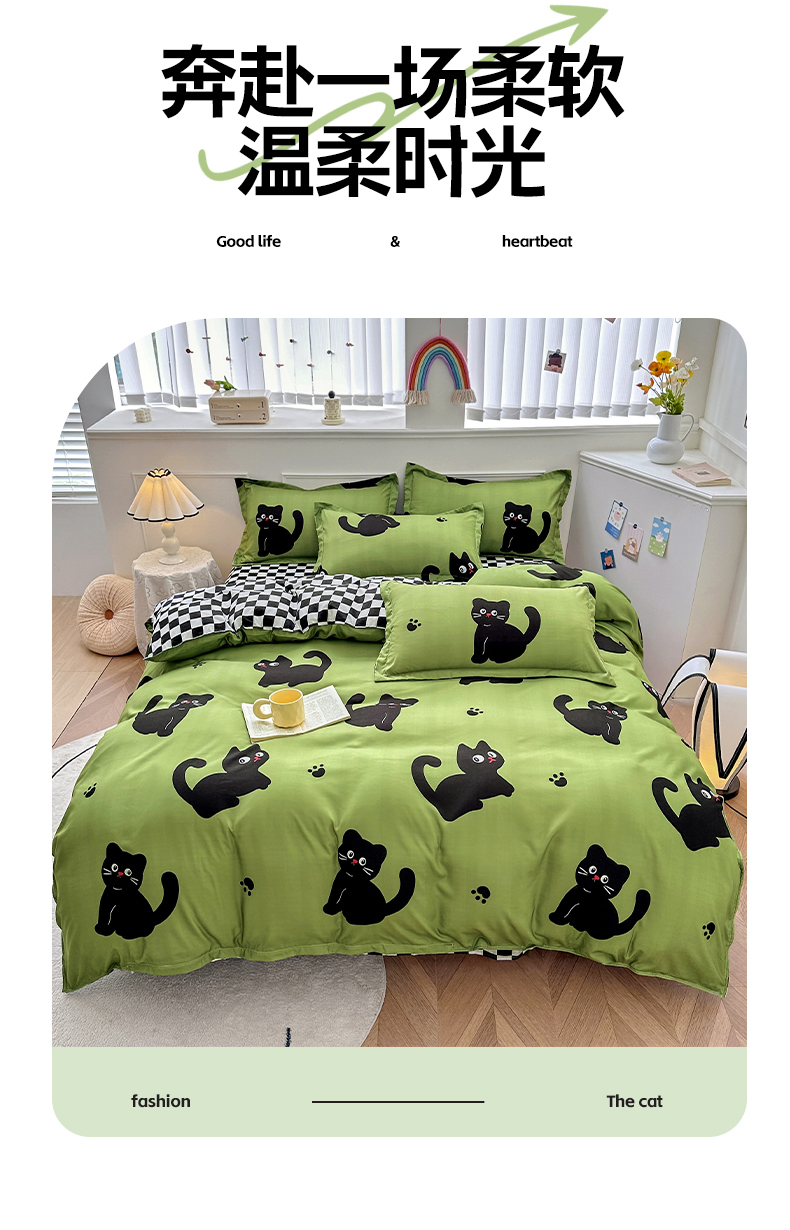 商品名称:卡斯诺 2025新款芦荟棉四件套7月新花型 喵星人