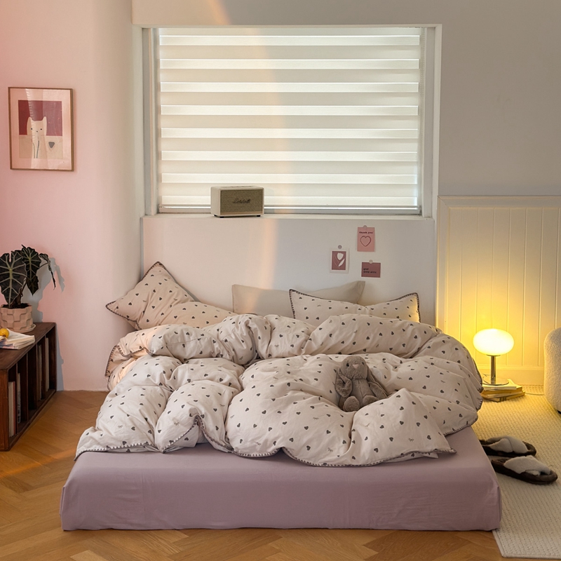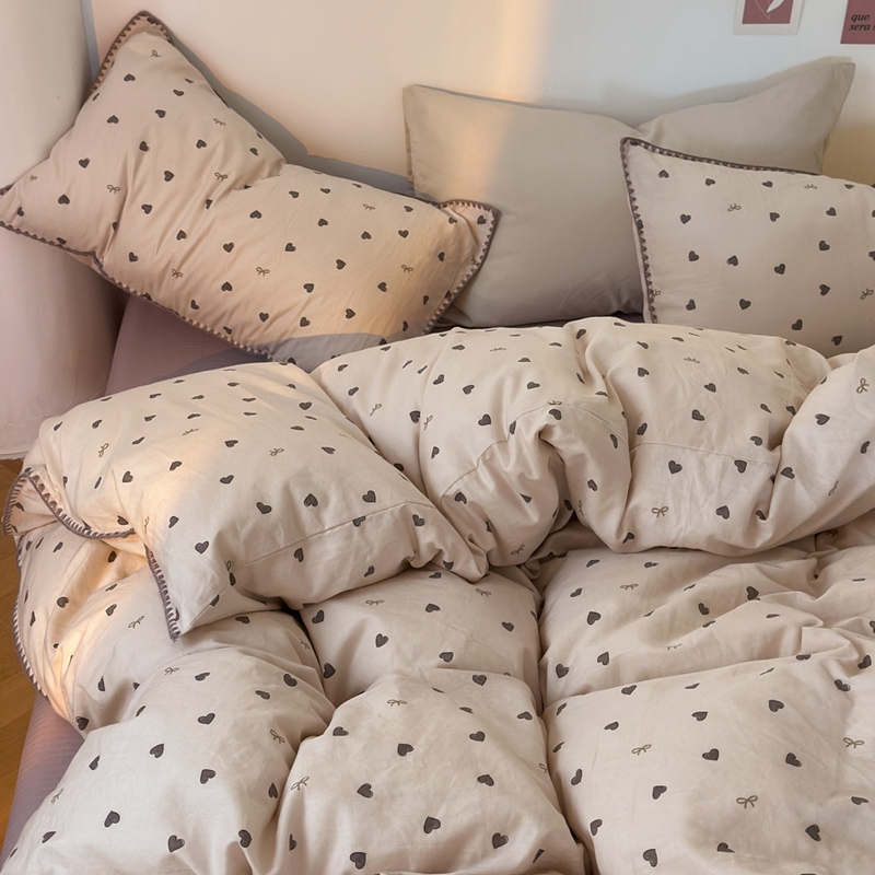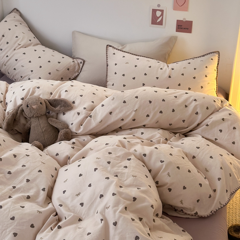 洋铭区(原狠狠爱) 2024新款全棉双层纱四件套 黑桃爱心