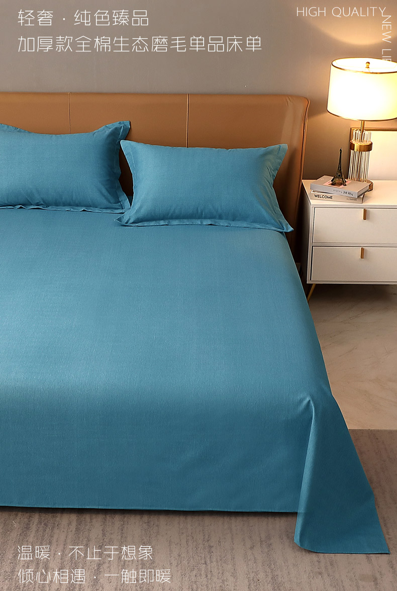 晶缦家纺 2024新款加厚纯棉喷气全棉纯色生态磨毛多规格单品床单 纯依-湖蓝