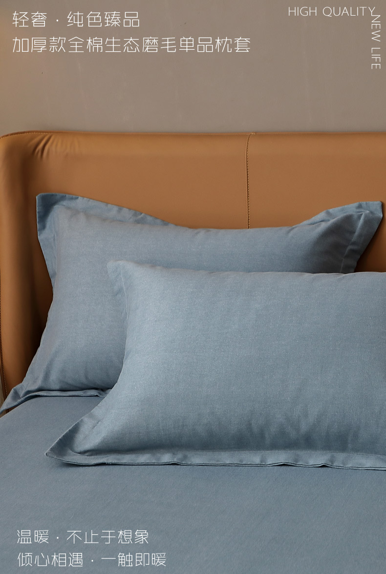 晶缦家纺 2024新款加厚纯棉喷气全棉纯色生态磨毛多规格单品枕套 纯依-蓝灰