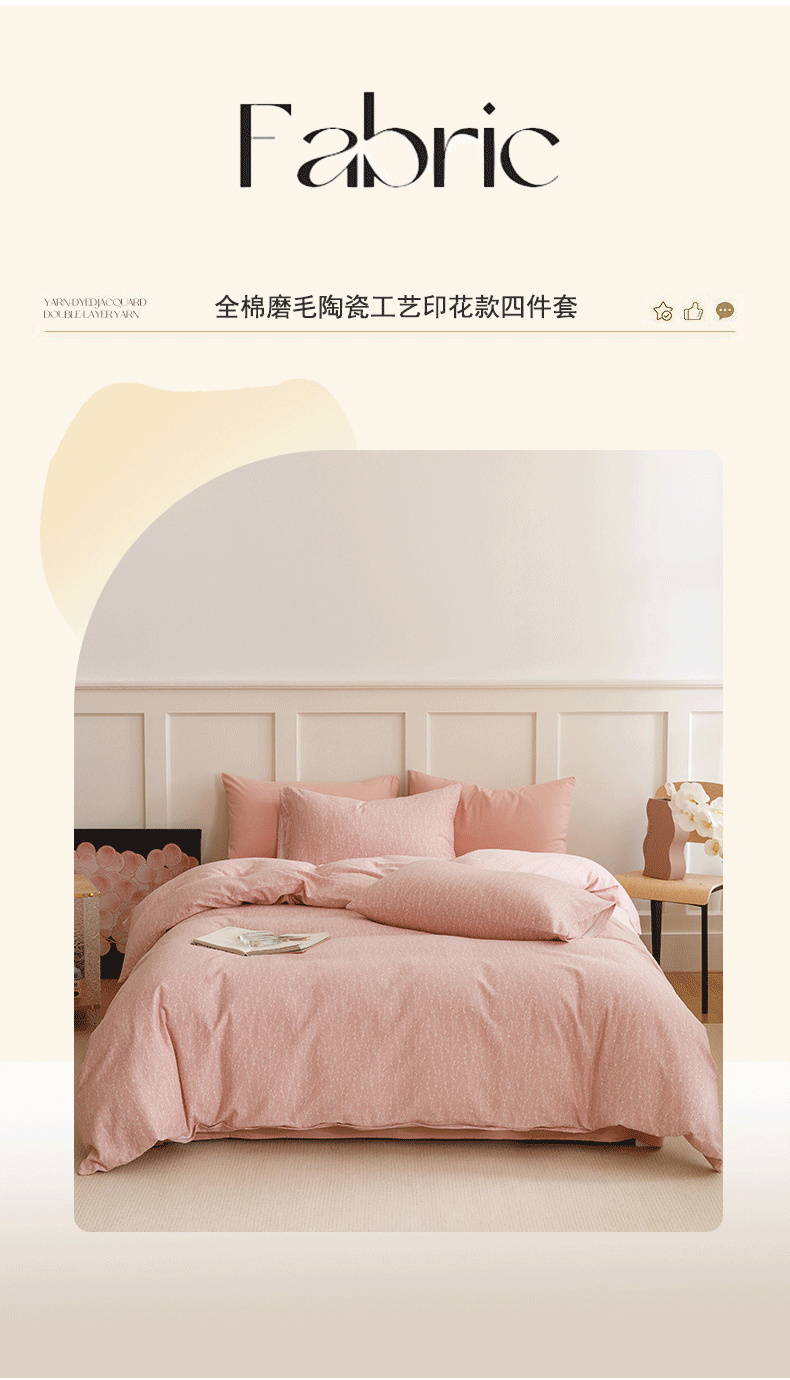 当前位置: 91家纺网 > 商品网购 > 床品套件 > 四件套 > 全棉普通四件套 > 2024新款全棉陶瓷磨毛印花四件套 一生所爱-粉