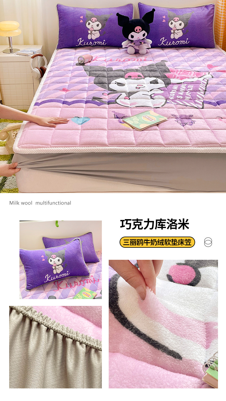 商品名称:米帛家纺 2024新款三丽鸥印花牛奶绒床笠 巧克力库洛米