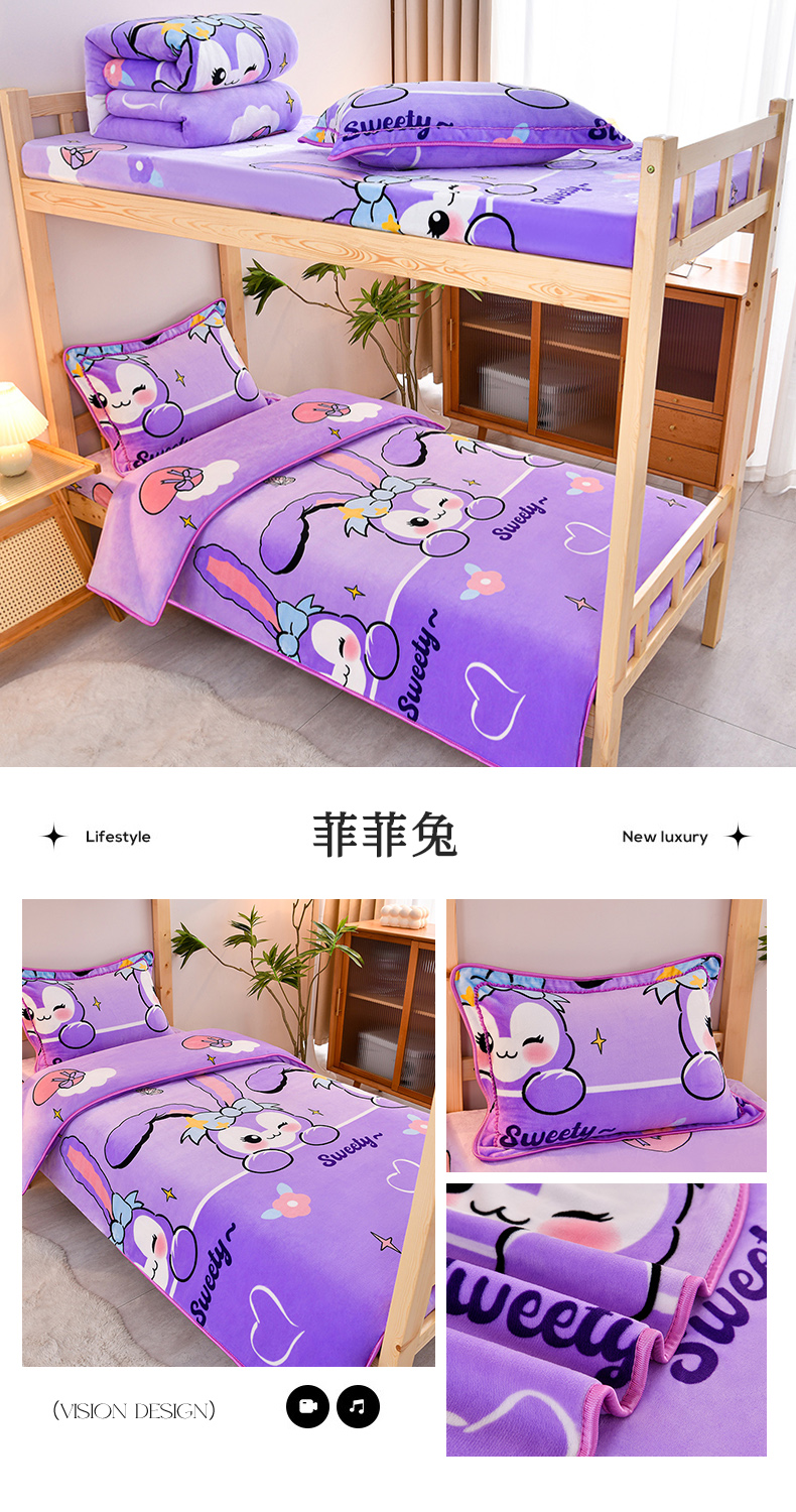 (总)牵梦萦 2025新款牛奶绒学生三件套,幸运猫咪,夏兰,菲菲兔,匆匆那年,爱情条码,斑马,宝蓝,宾利蓝,等待,豆沙,欢乐时光,黄色,吉米粉,简单爱,酒红,桔色,咖啡,蓝大格,鹿之恋,牛油果绿,浅灰,天蓝,驼色,玉色,郁金香,紫色,晚安鹿