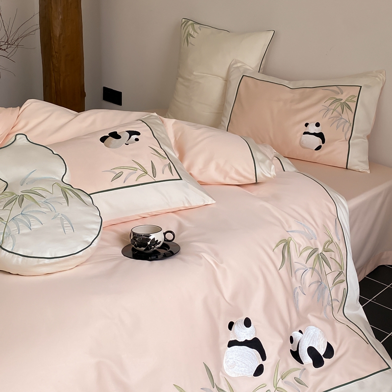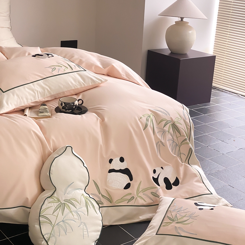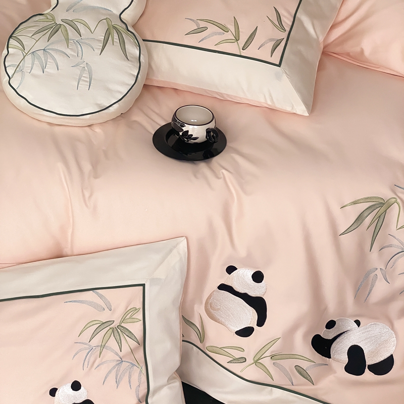 商品名称:MIU缪家居 2024新款100支全棉熊猫与竹系列四件套 熊猫与竹-嫩粉