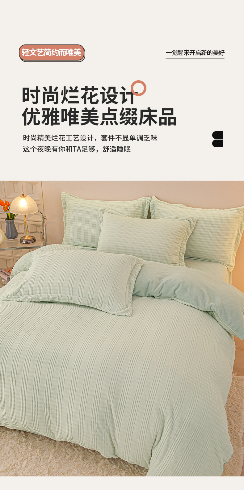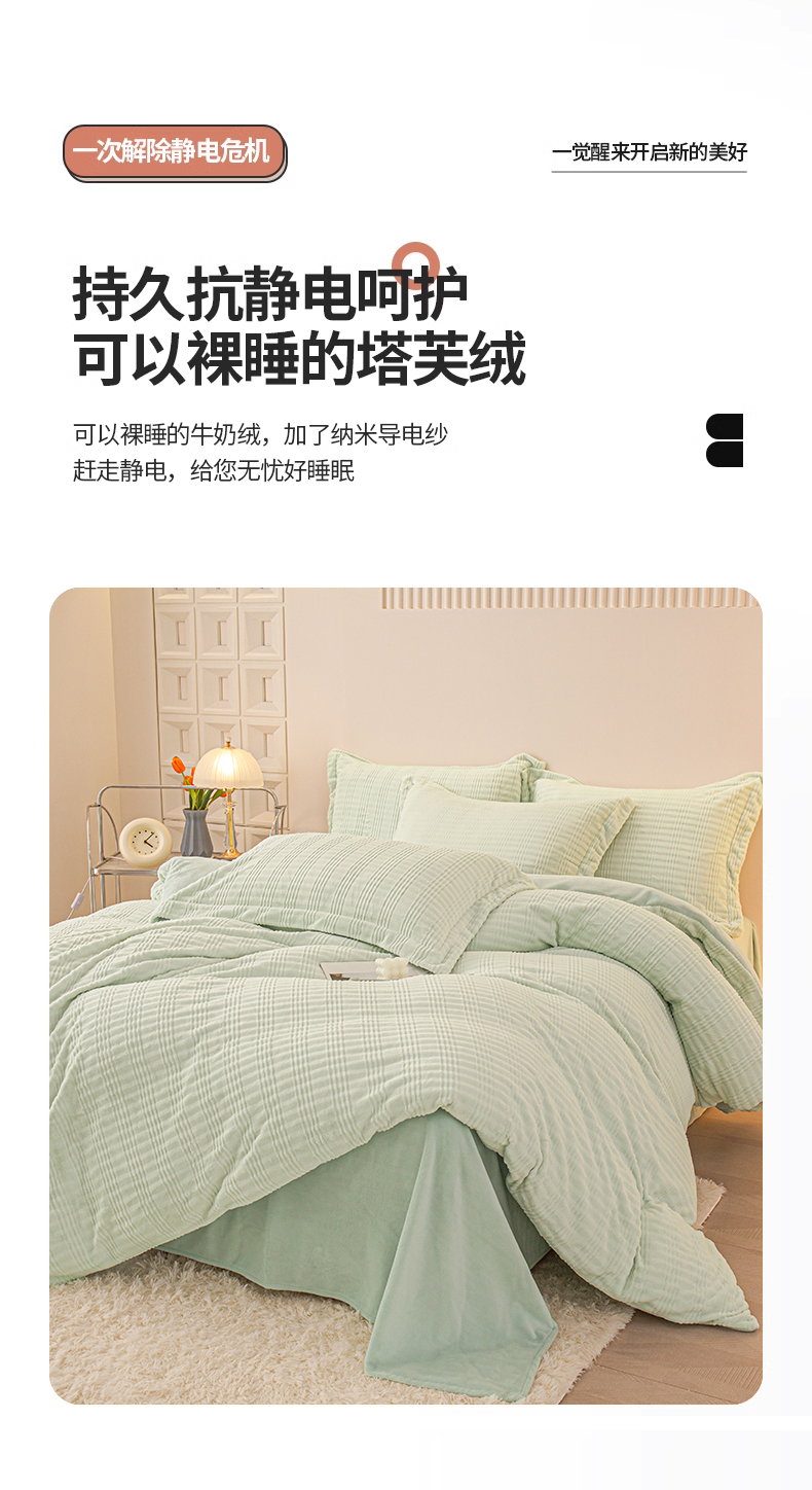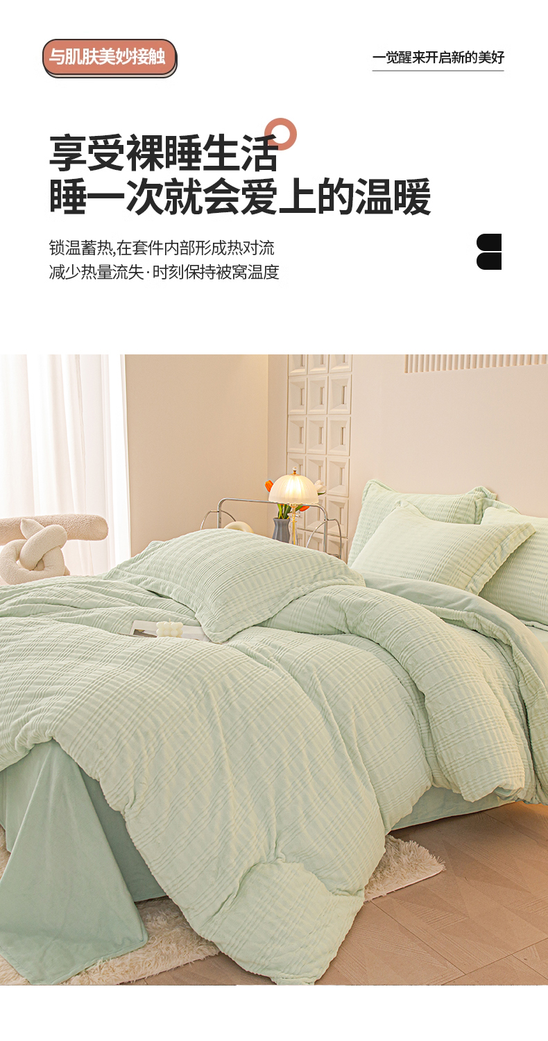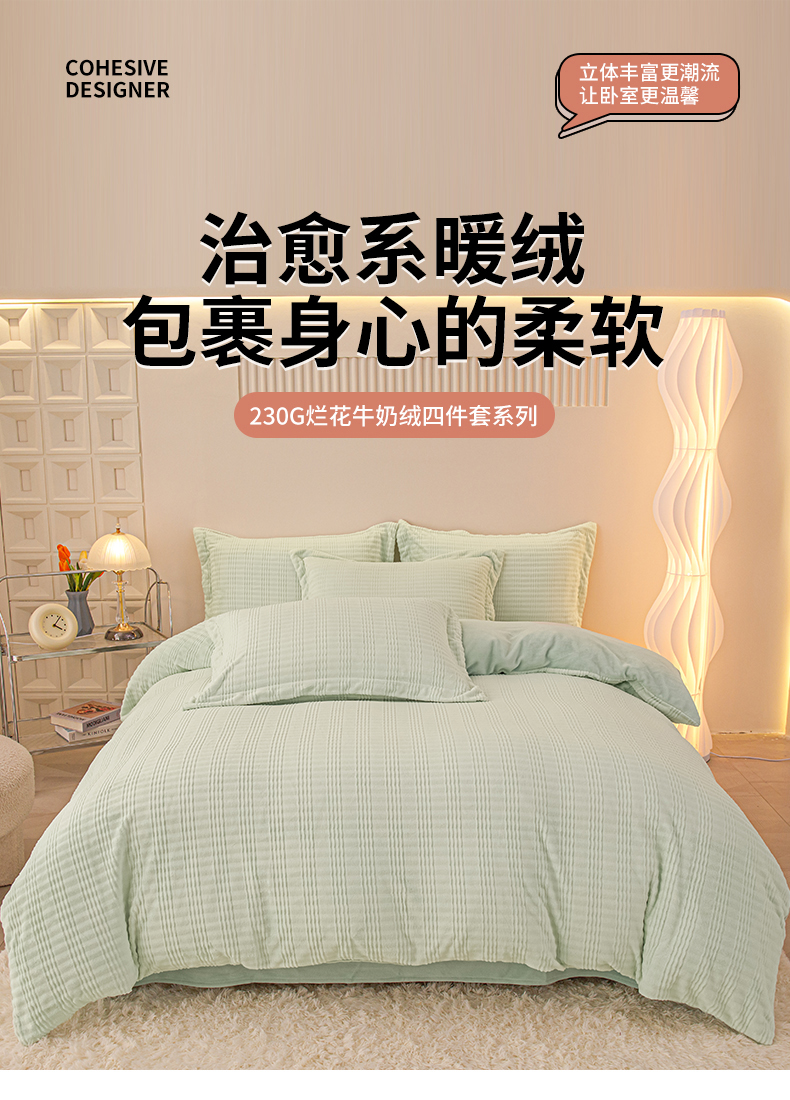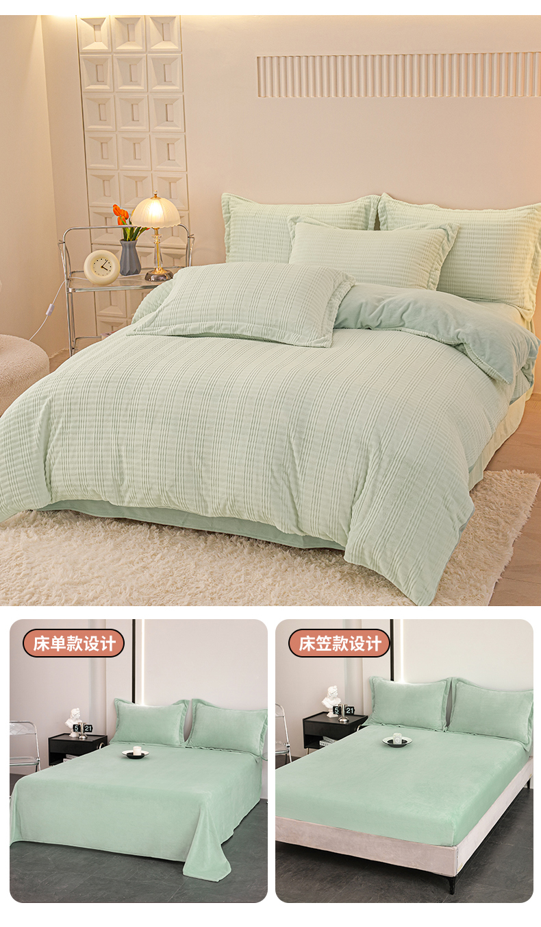 当前位置: 91家纺网 > 商品网购 > 床品套件 > 四件套 > 牛奶绒四件套 > 锦罗绣 2024新款全消光230克牛奶绒烂花绒提花四件套 条纹-绿