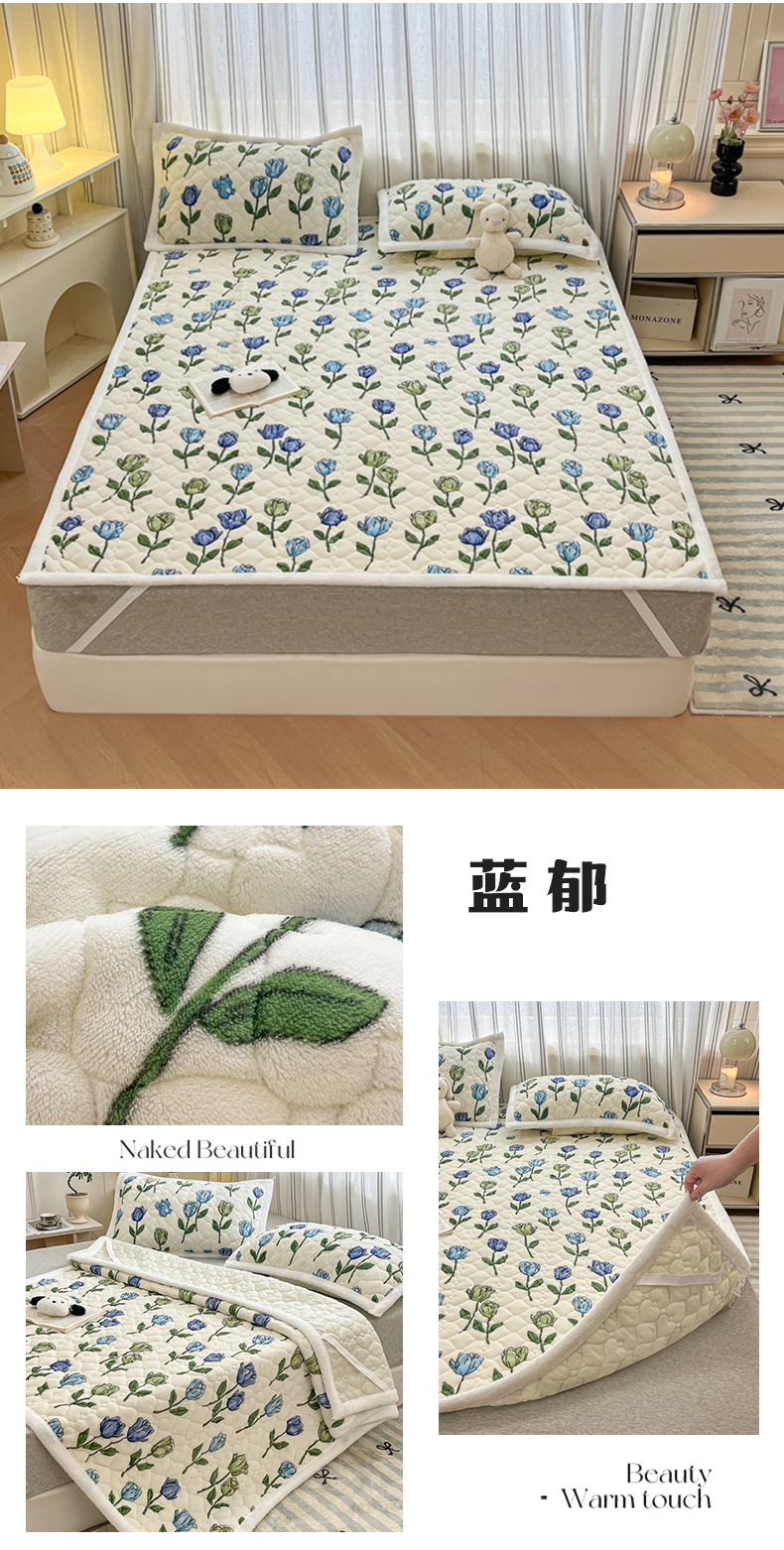 当前位置: 91家纺网 > 商品网购 > 床垫/床褥 > 普通床垫 > 启程家纺 2024新款A类印花牛奶绒床垫加厚绒保暖床护垫 蓝郁
