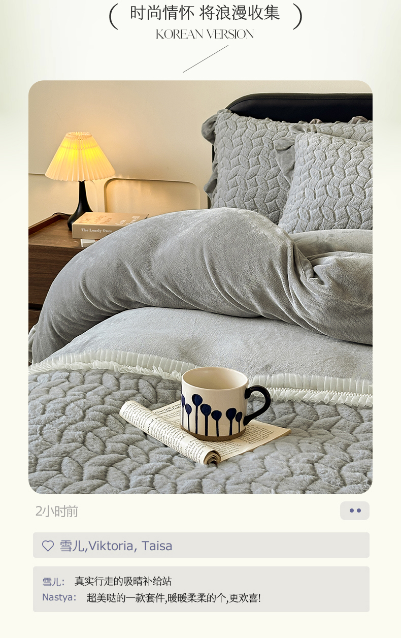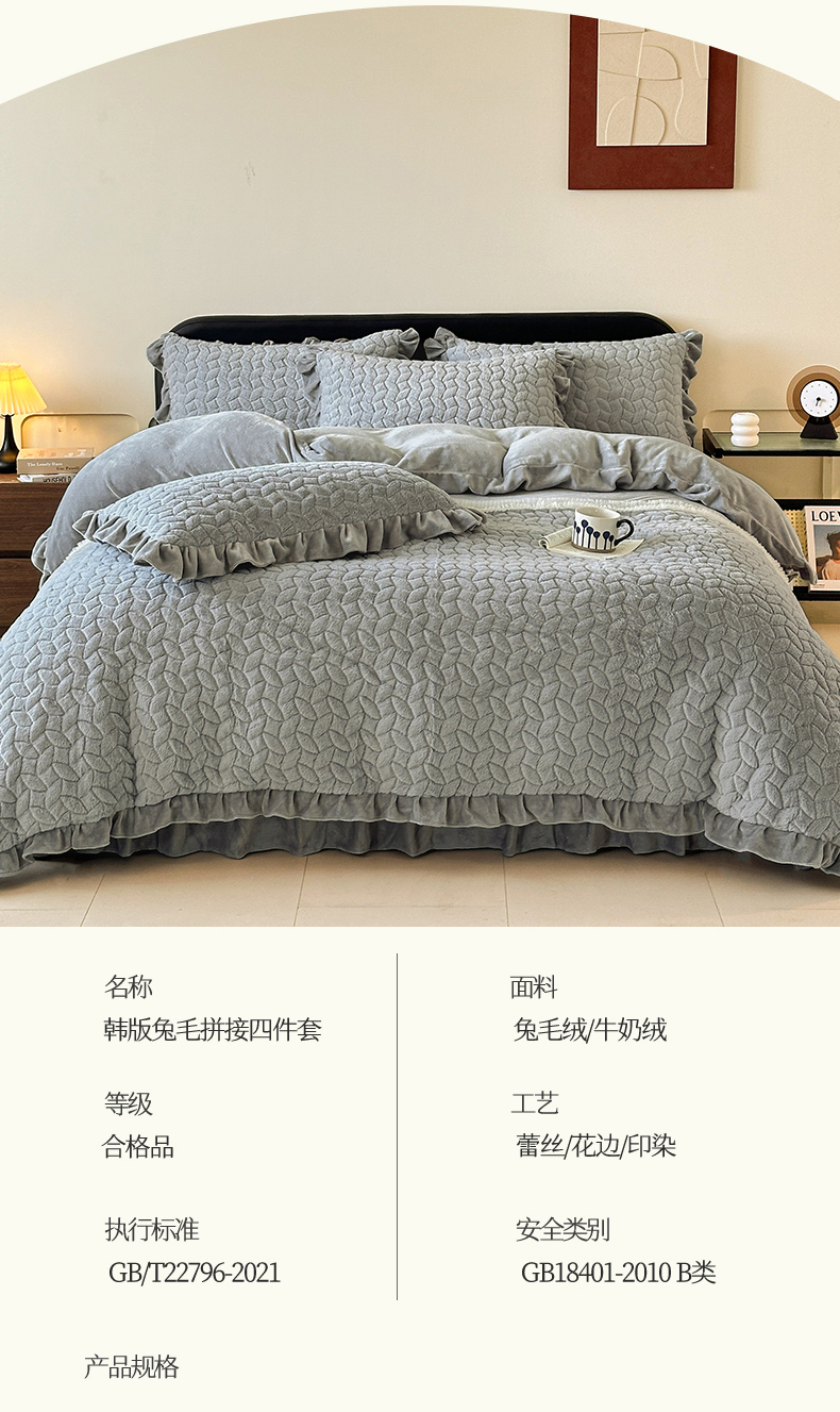 商品名称:2024秋冬新款韩版兔毛拼接四件套 绅士灰