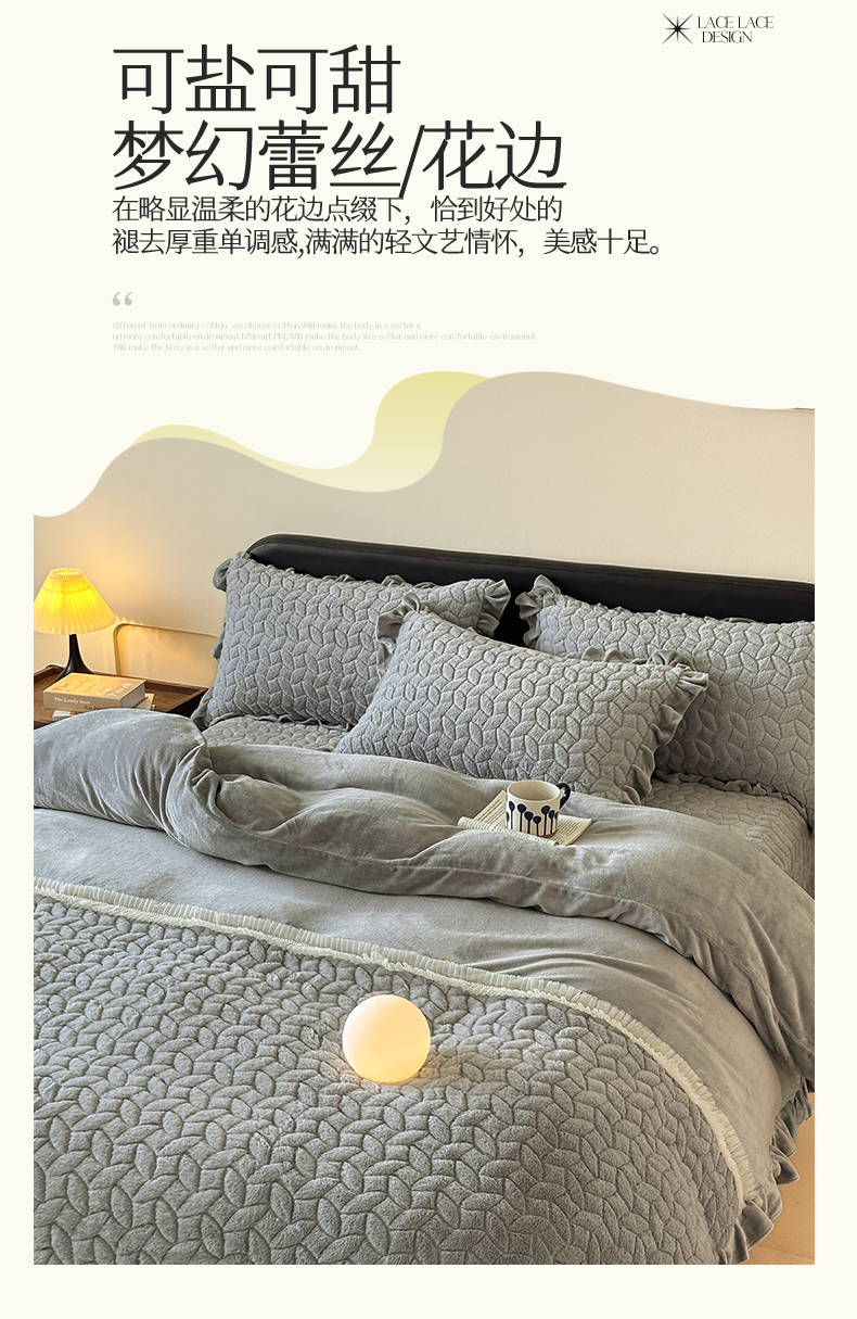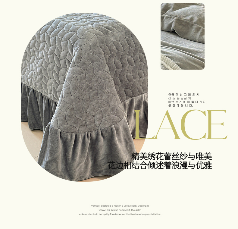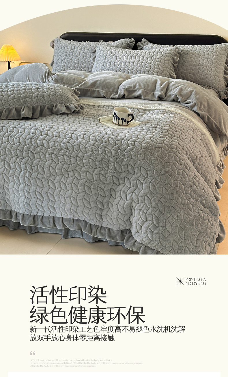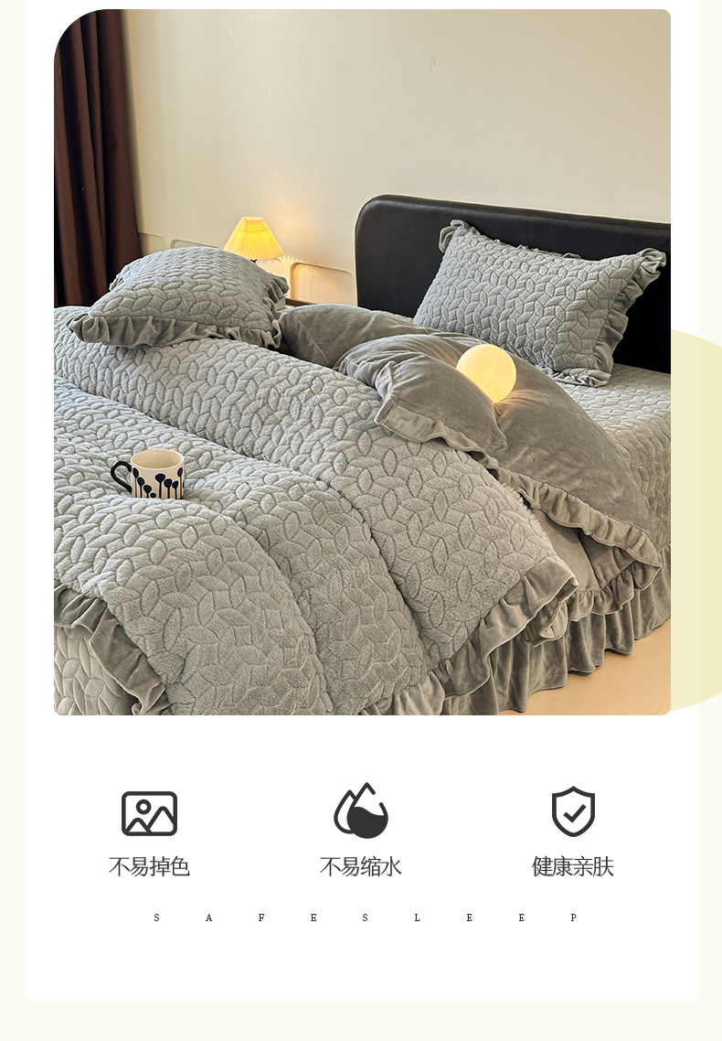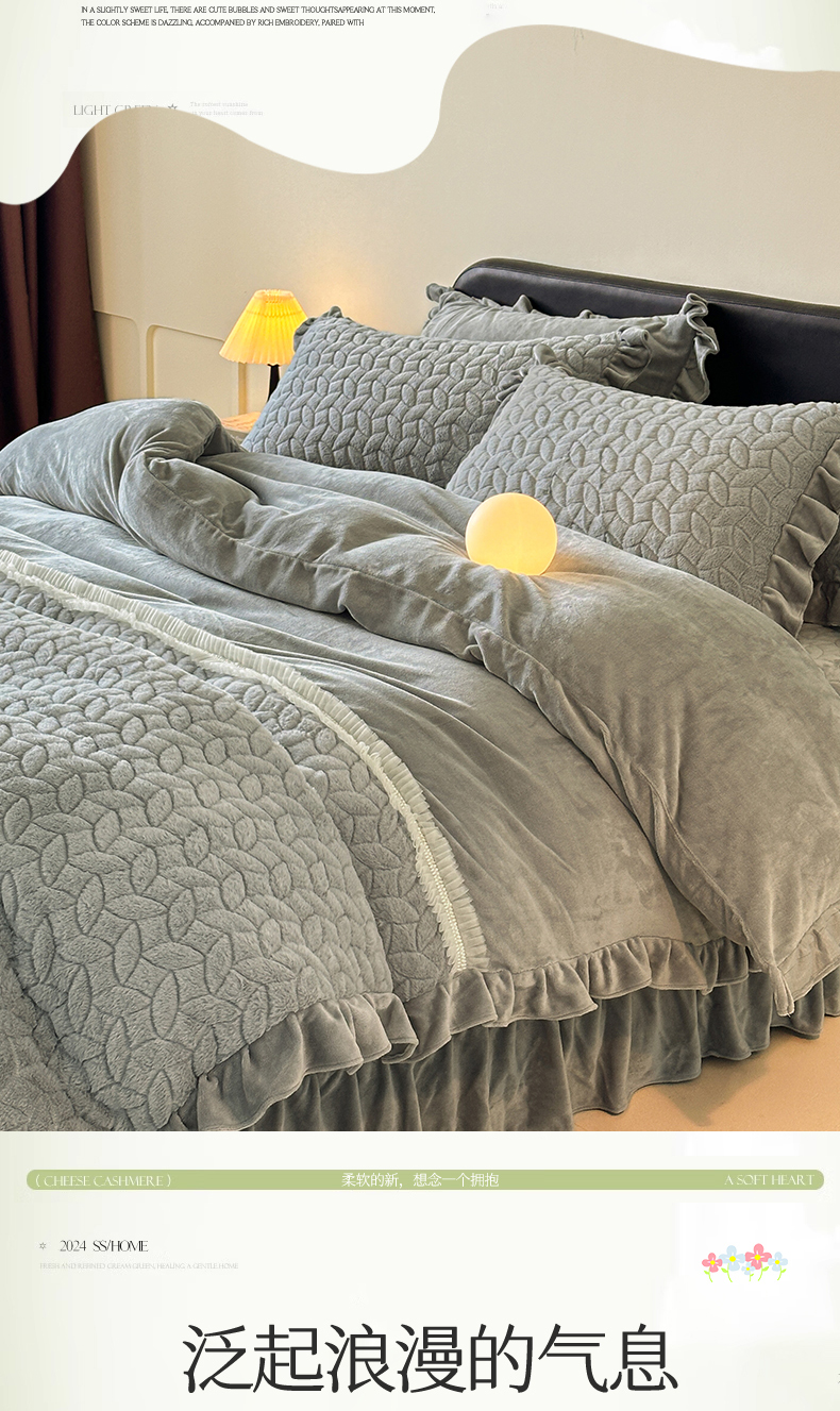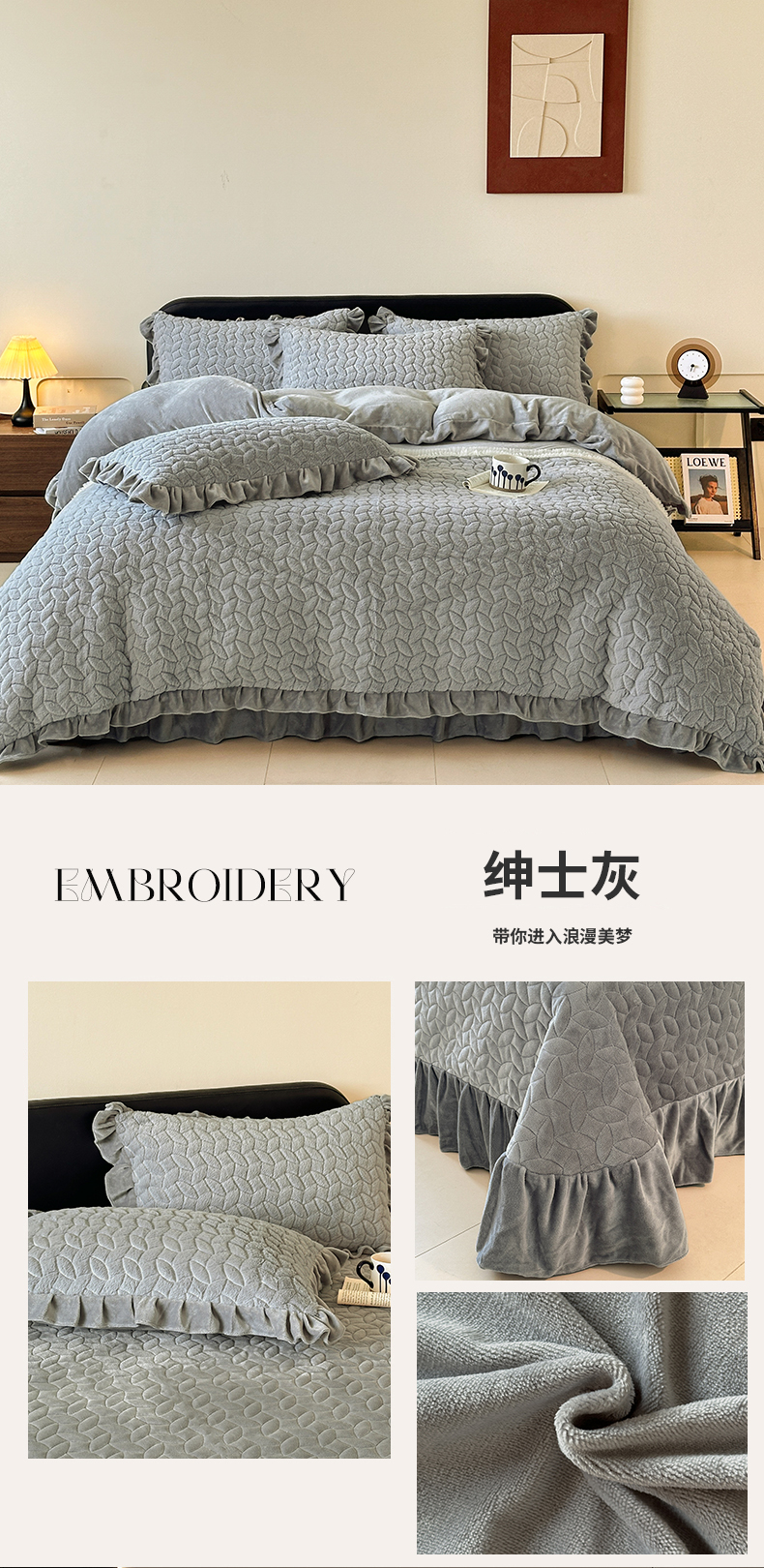 (总)恒爱 2022秋冬水晶绒翩翩花舞夹棉床裙四件套,大红色,豆沙红,橄榄绿,公主粉,桔色,咖啡色,孔雀绿,拉菲红,罗兰紫,玫红色,美人玉,米白色,米驼色,抹茶绿,浅灰色,紫色