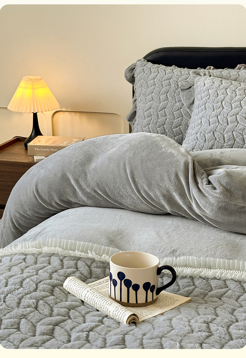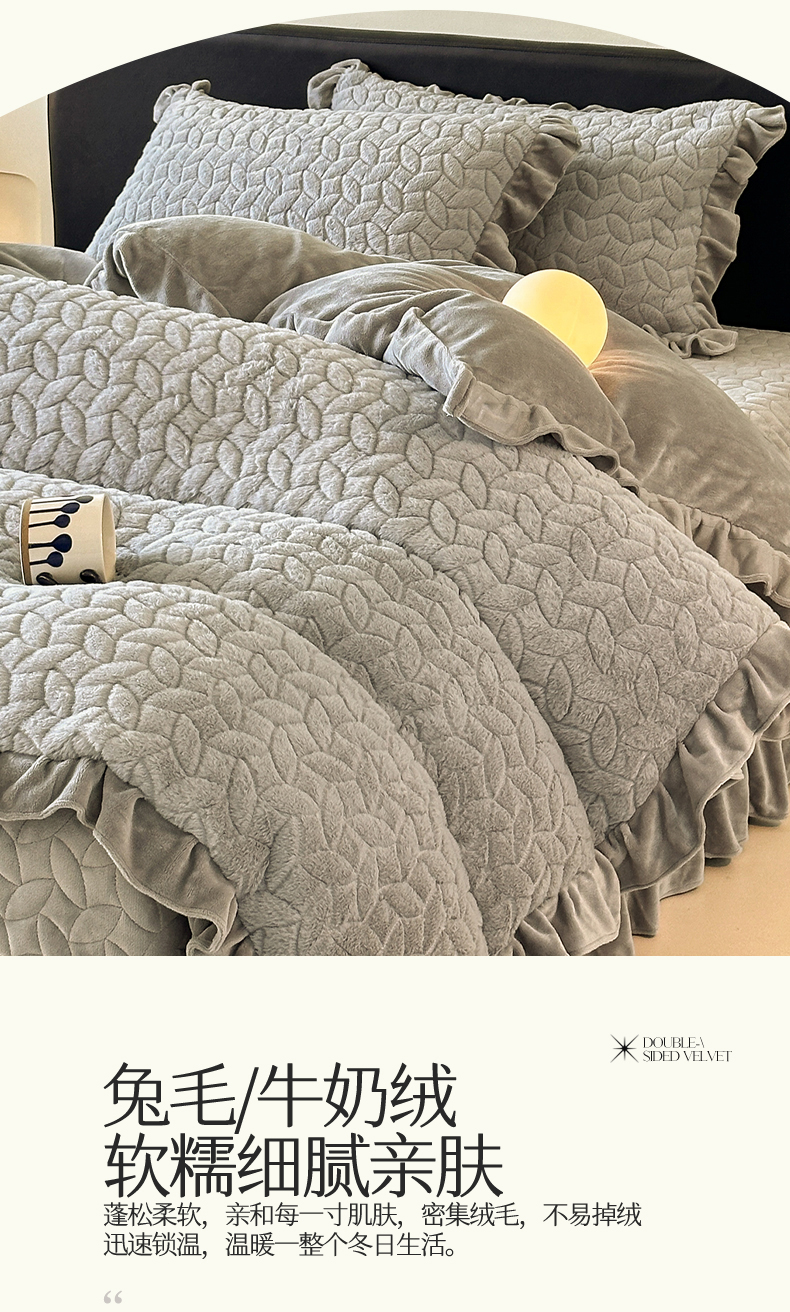 2024秋冬新款韩版兔毛拼接四件套 绅士灰