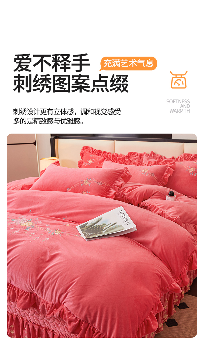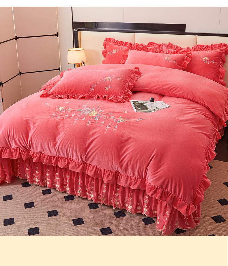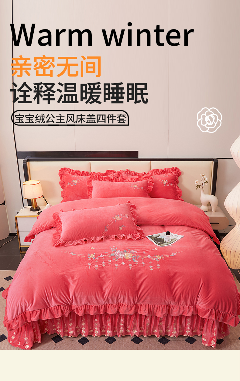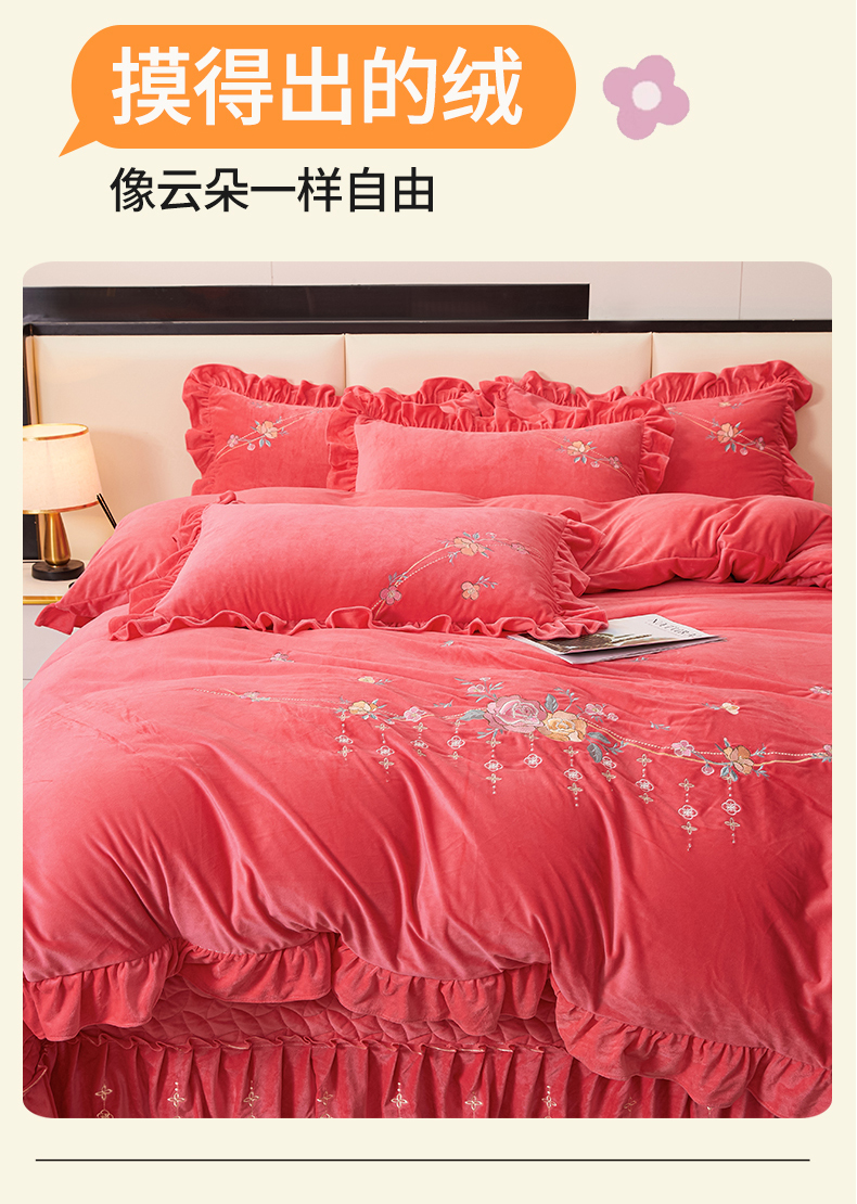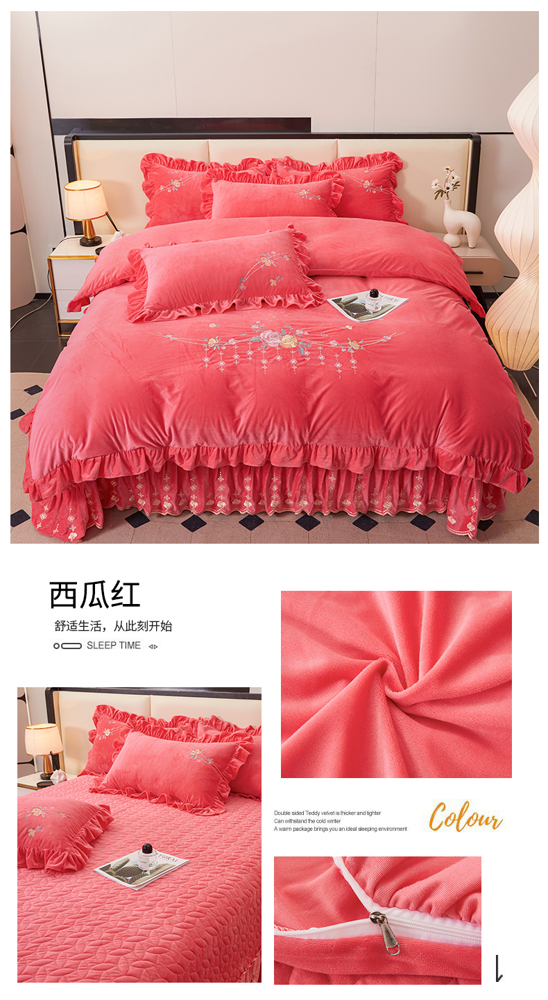 当前位置: 91家纺网 > 商品网购 > 床品套件 > 四件套 > 其它四件套 > 2024秋冬新款茉含宝宝绒公主风四件套 西瓜红-