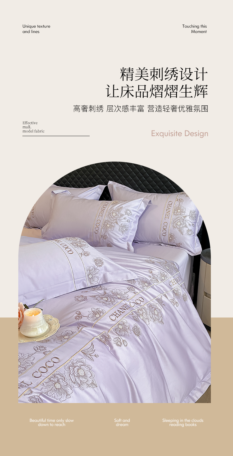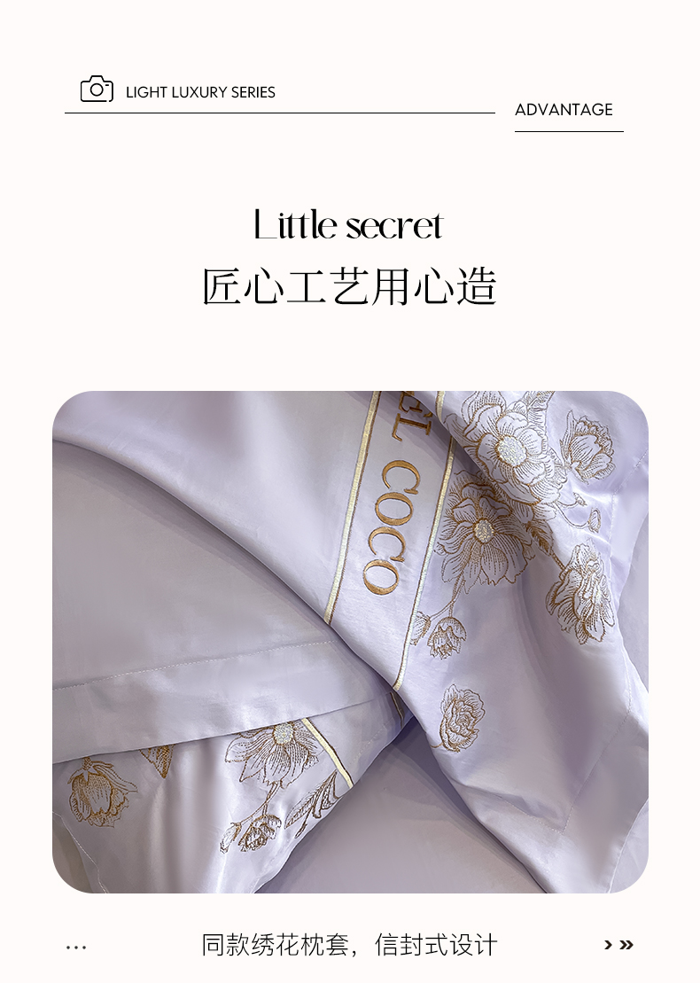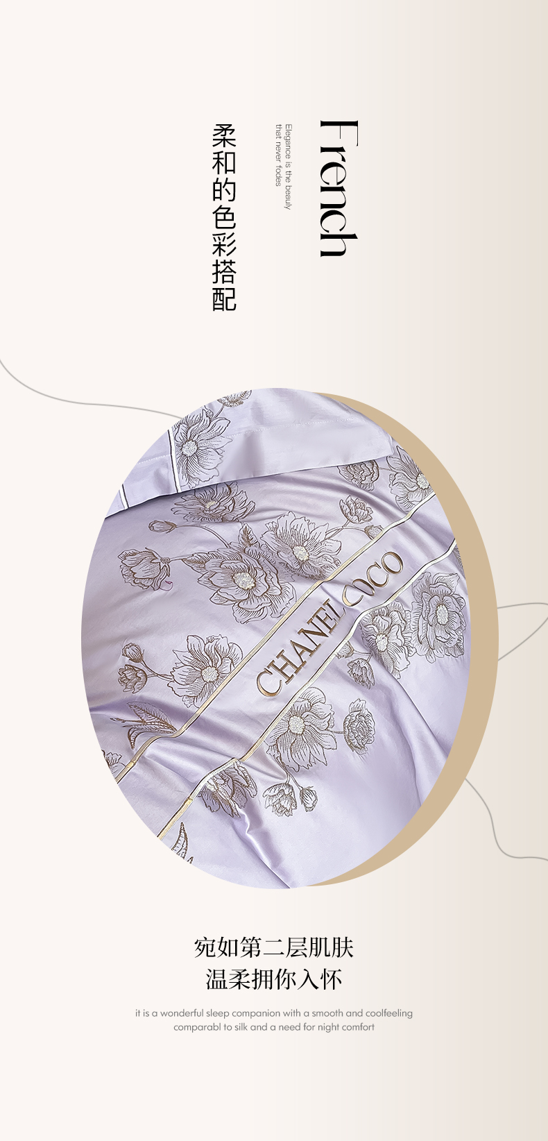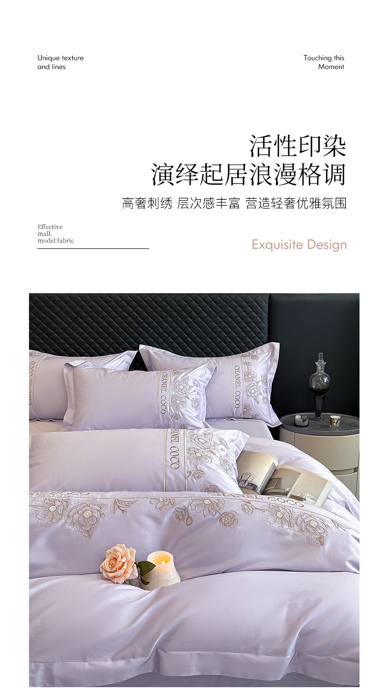 商品名称:理想家家纺 2024新款13372全棉刺绣四件套系列-花季 紫