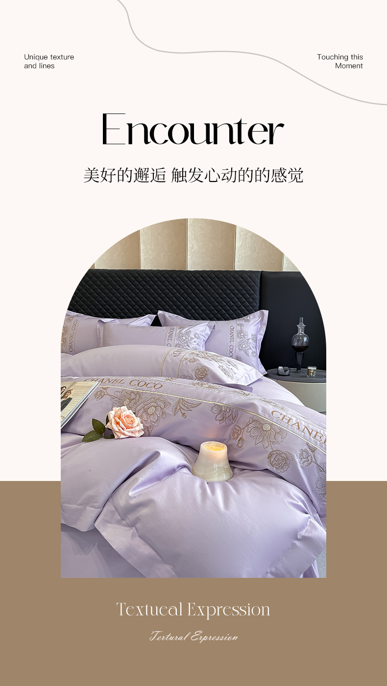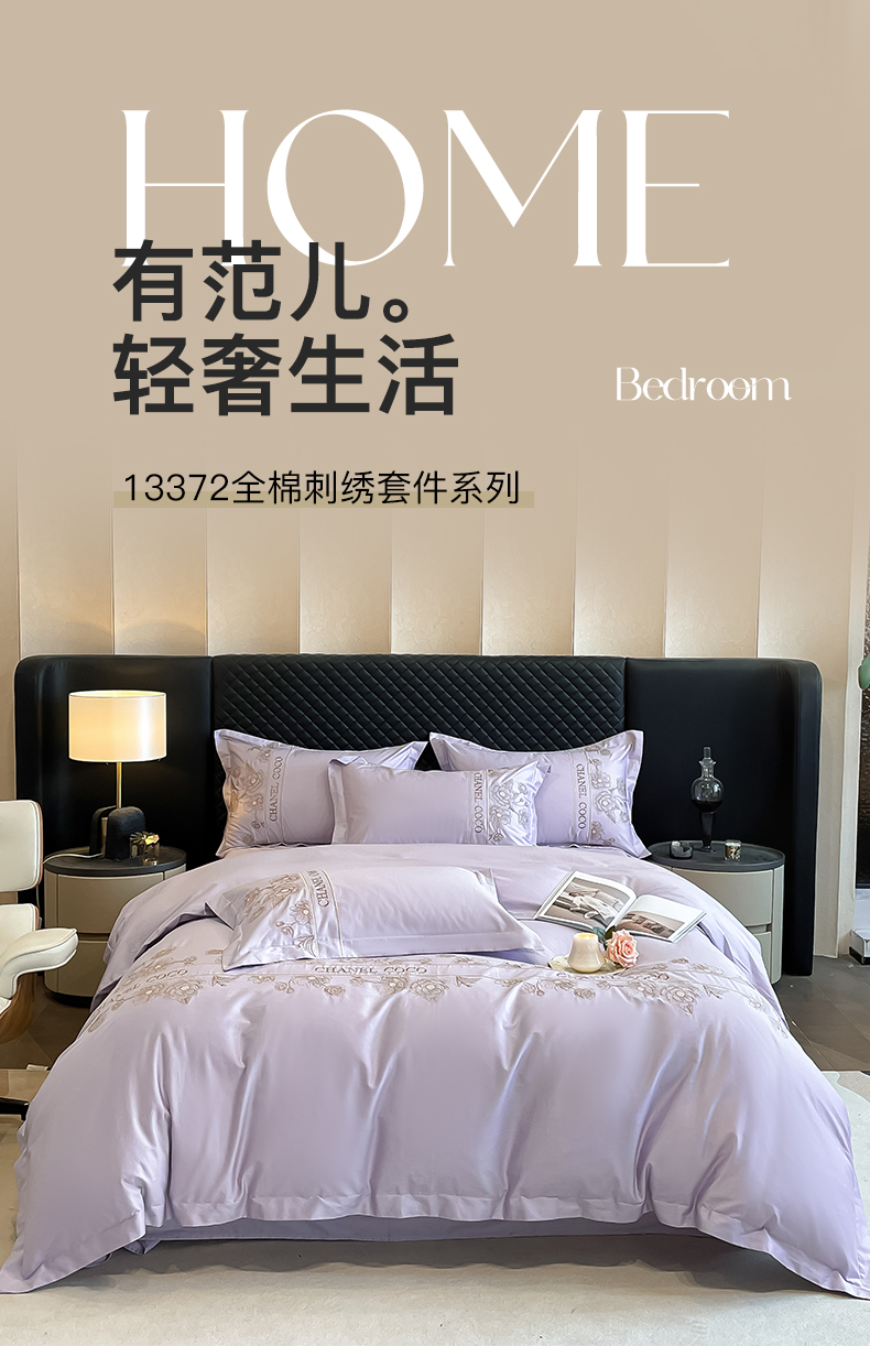 理想家家纺 2024新款13372全棉刺绣四件套系列-花季 紫