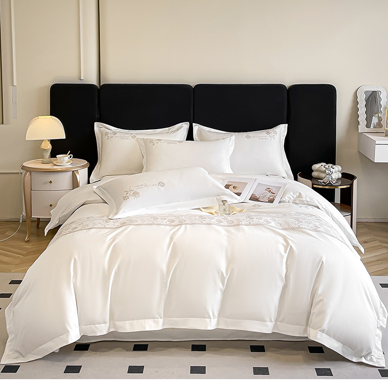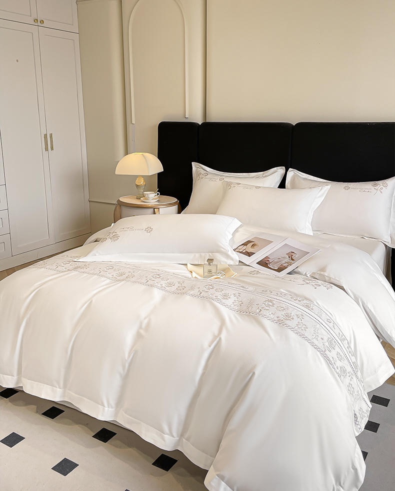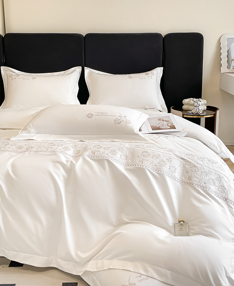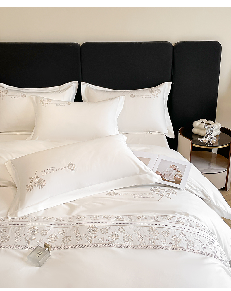 理想家家纺 2024新款13372全棉刺绣四件套系列-花恋 白