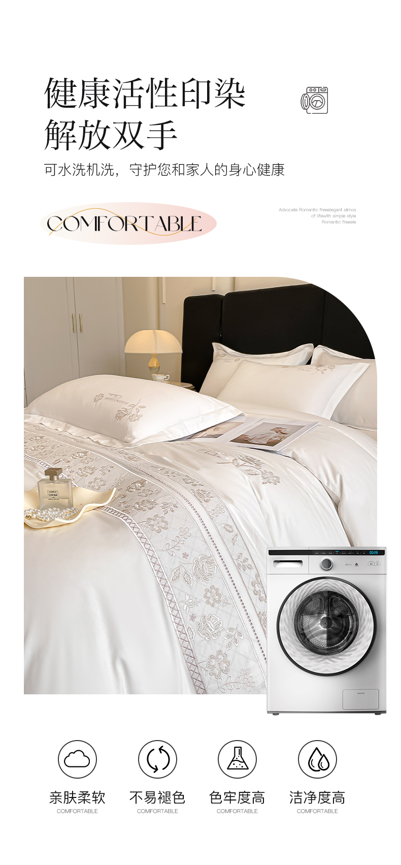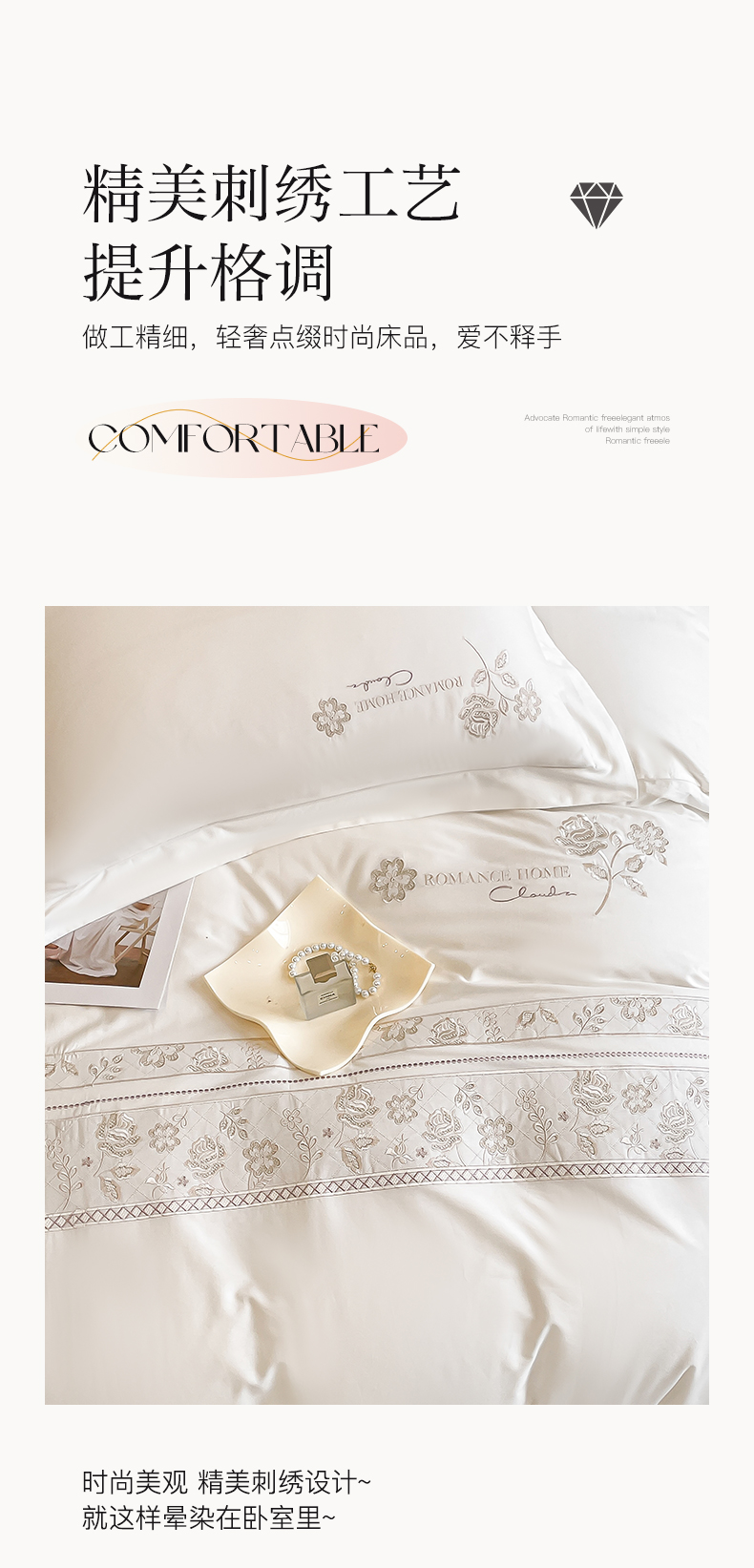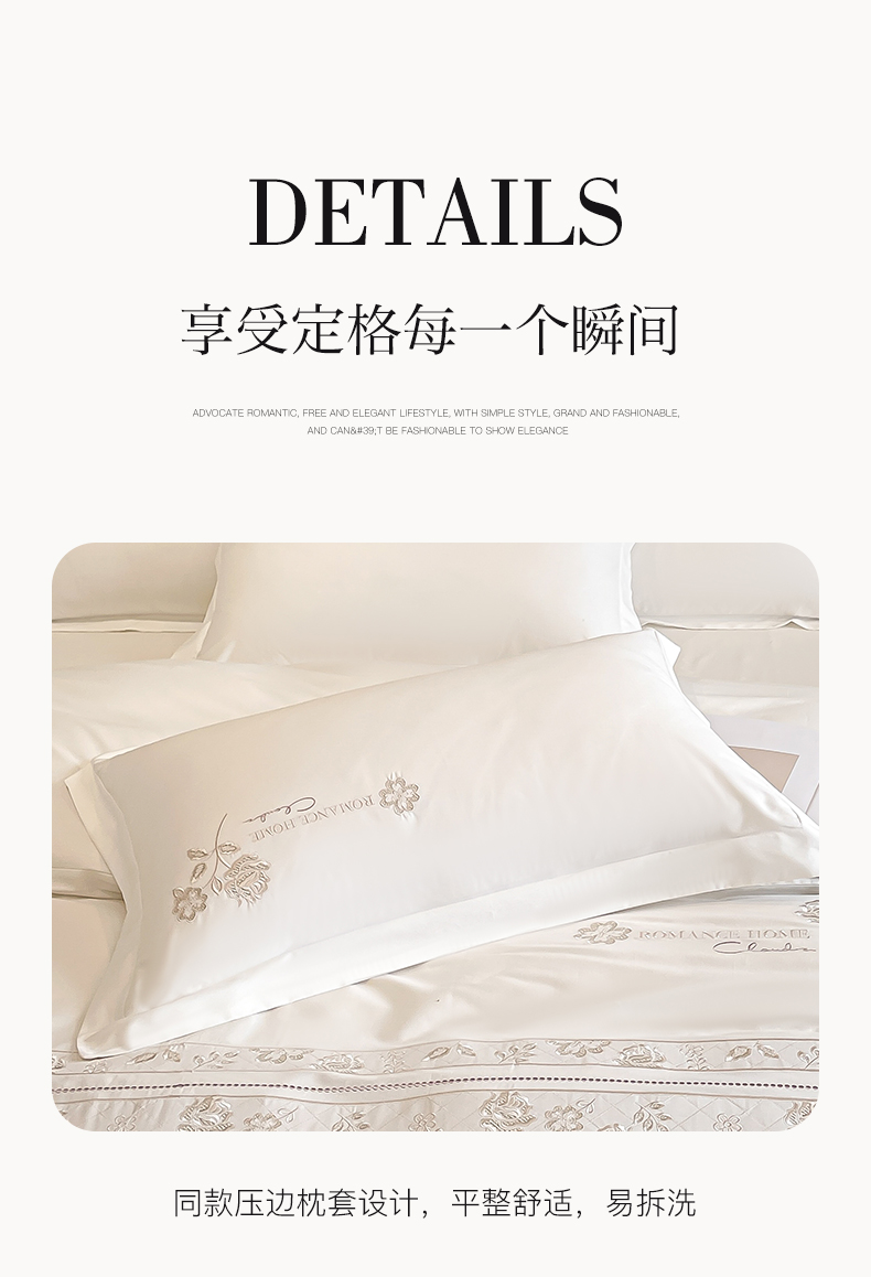 商品名称:理想家家纺 2024新款13372全棉刺绣四件套系列-花恋 白
