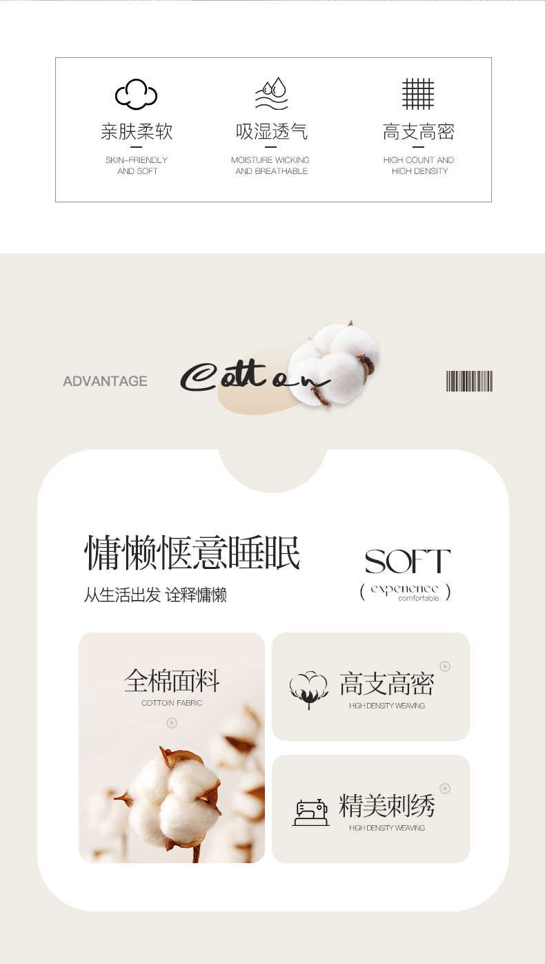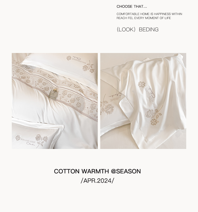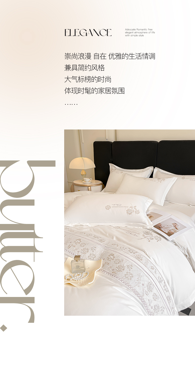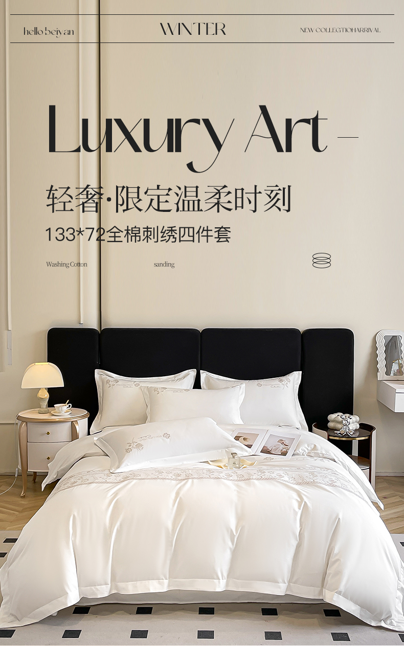 商品名称:理想家家纺 2024新款13372全棉刺绣四件套系列-花恋 白