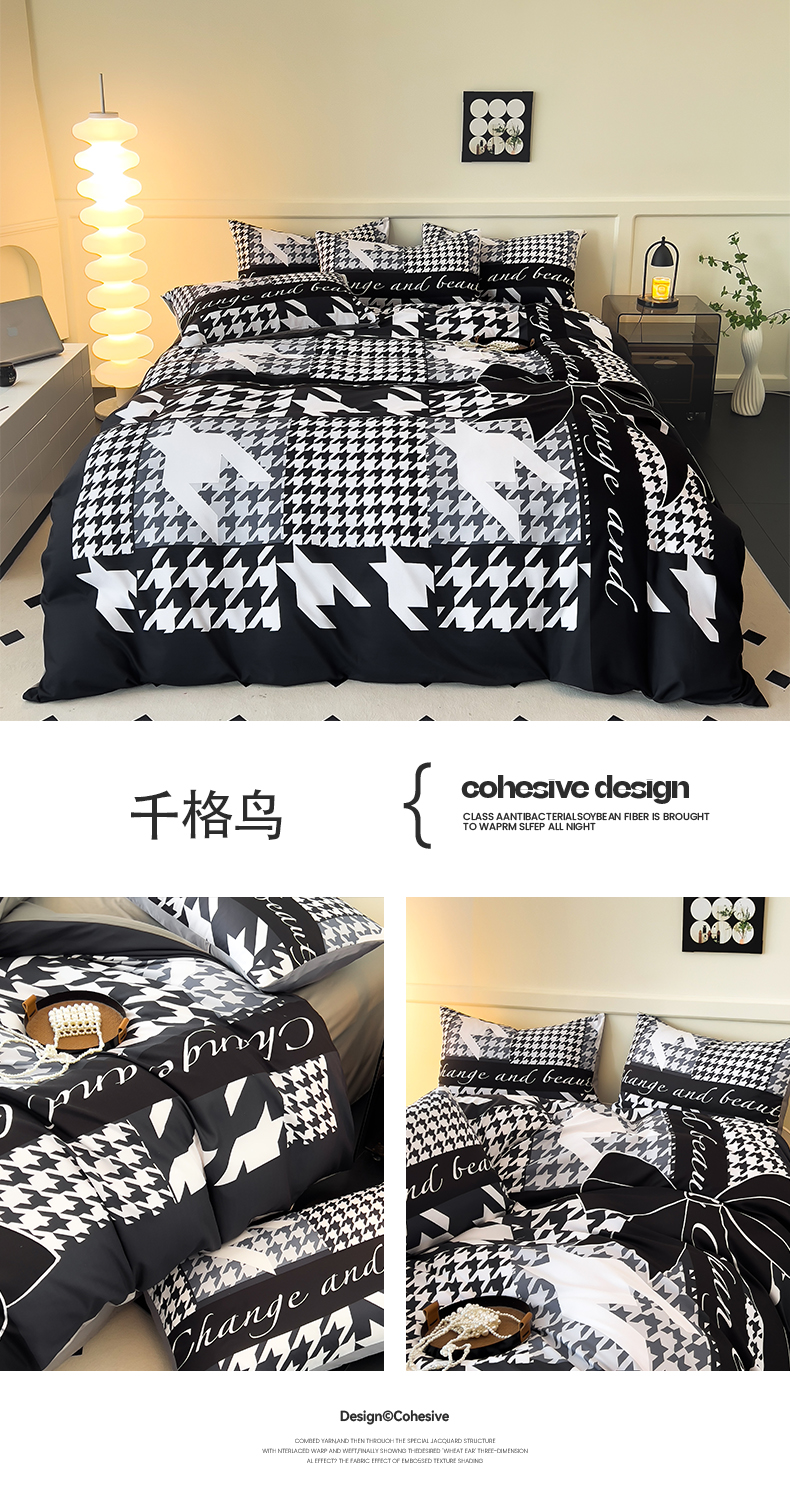 当前位置: 91家纺网 > 商品网购 > 床品套件 > 四件套 > 普通磨毛四件套 > 色鬼 2024新款大牌风擦边磨毛四件套网红直播爆款大版印花四件套 千鸟格