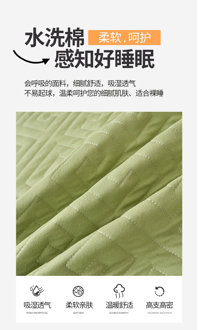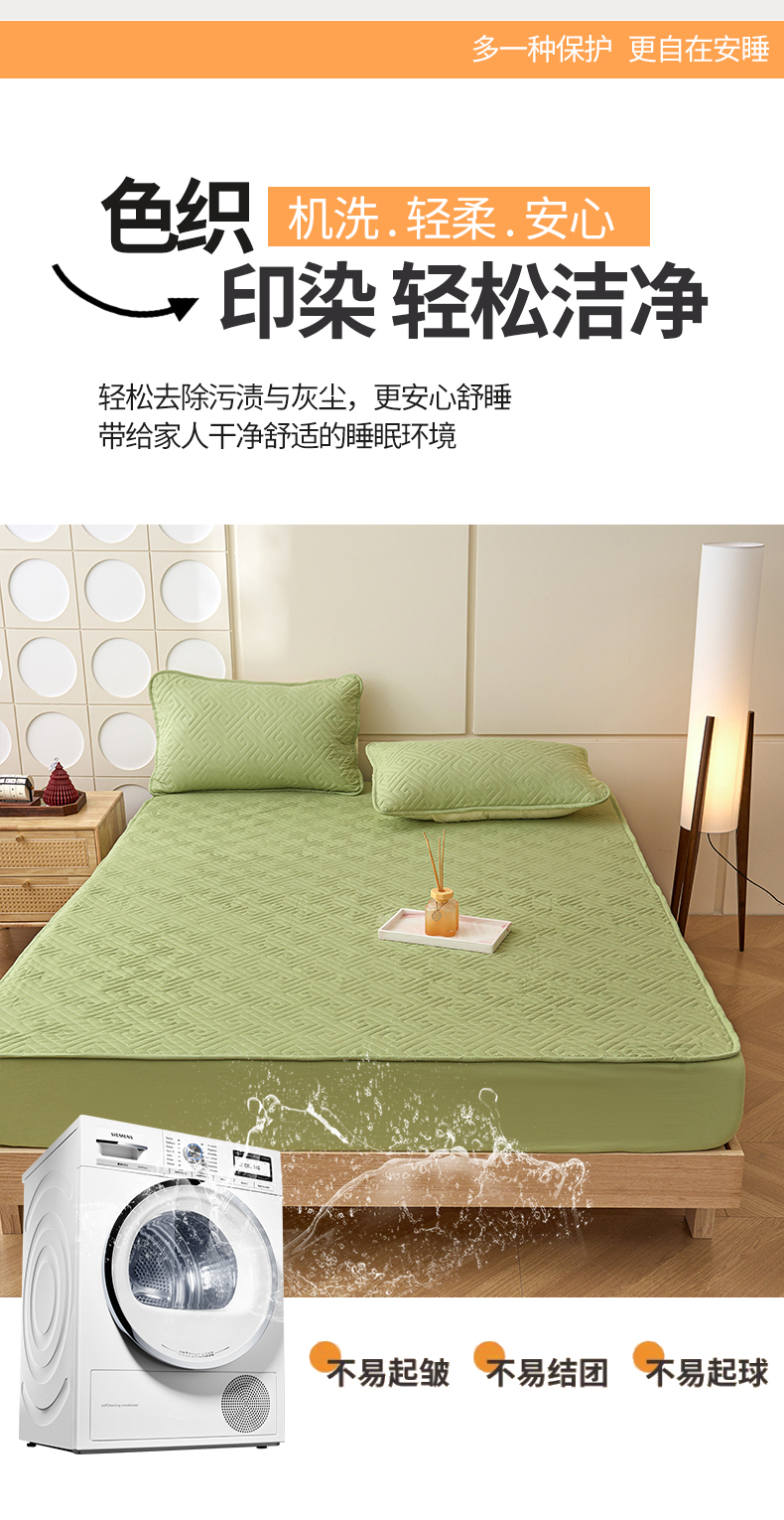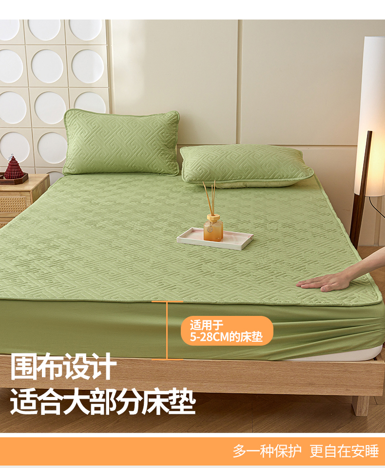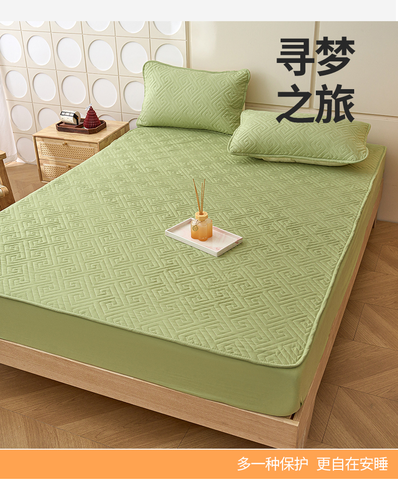 晚爱家纺 2024新款水洗棉抗菌夹棉床笠三件套床垫保护罩 抹茶绿