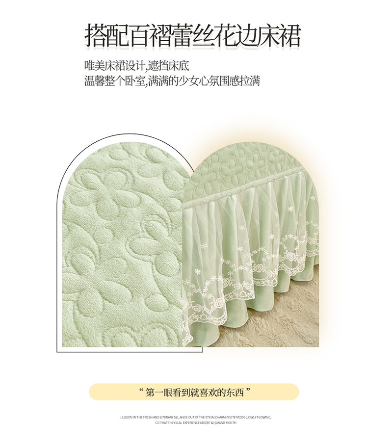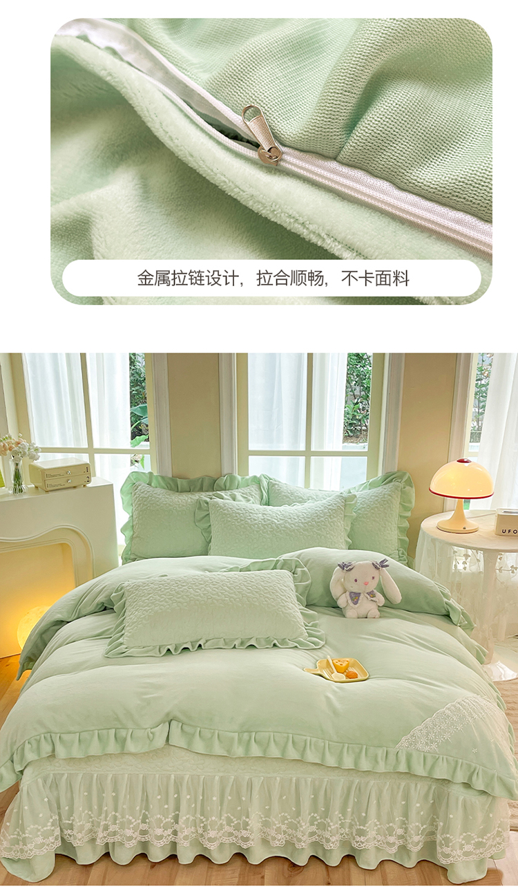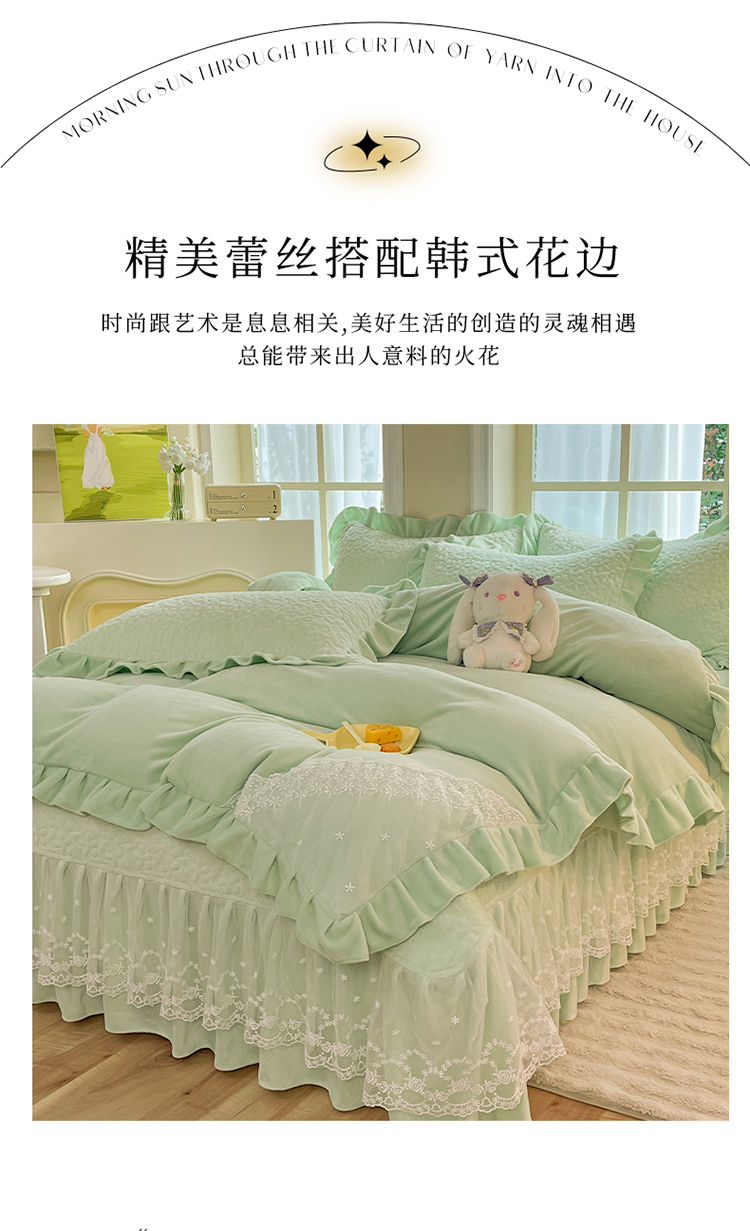 商品名称:2025秋冬新款220g全消光牛奶绒床盖四件套12斤重加厚婴儿绒法莱绒床裙款床盖款四件套