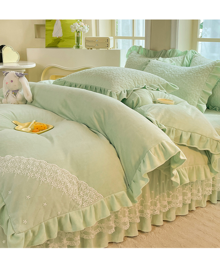 漫布云2025秋冬新款11斤230g全消光牛奶绒夹棉床盖款四件套纯色蕾丝花边刺绣床裙款床盖,蝶恋花-梦幻紫, 蝶恋花-嫩黄 ,蝶恋花-新芽绿, 蝶恋花-婴儿蓝, 蝶恋花-樱花粉