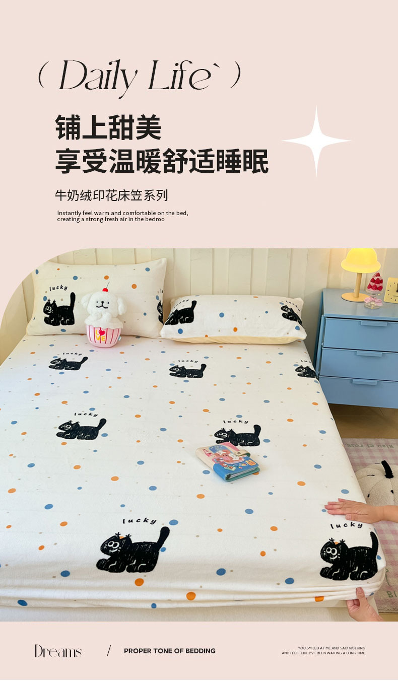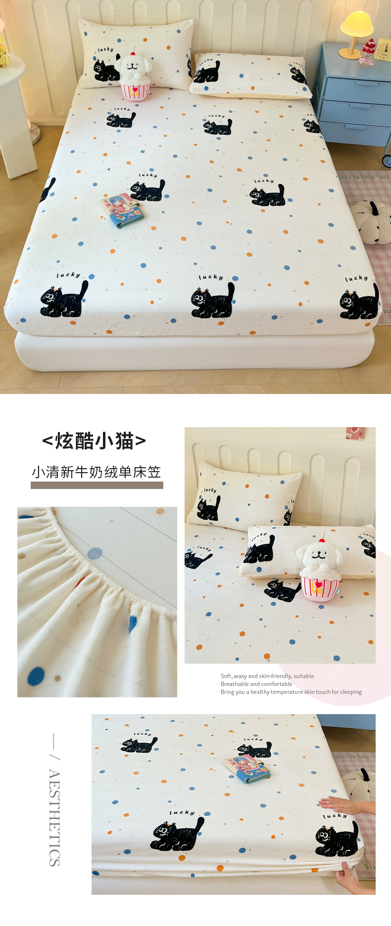 商品名称:星座家纺 2025新款小清新牛奶绒单床笠 炫酷小猫