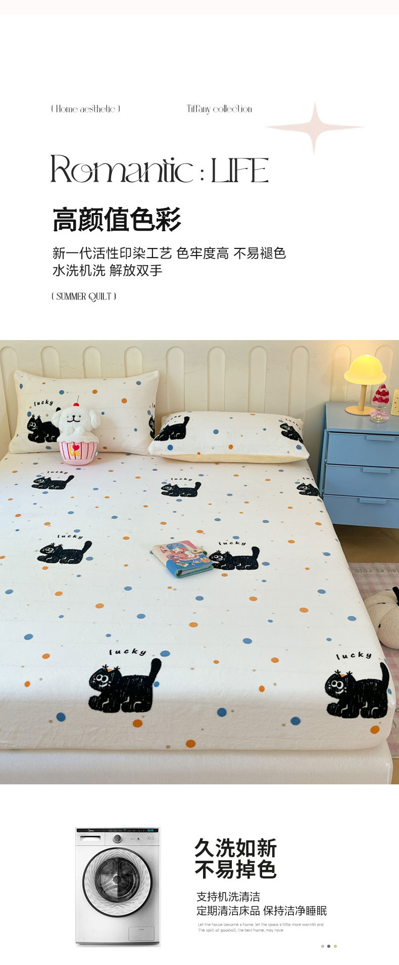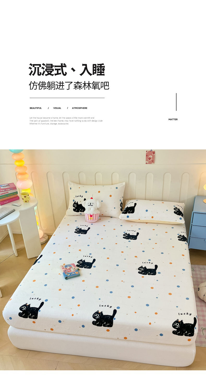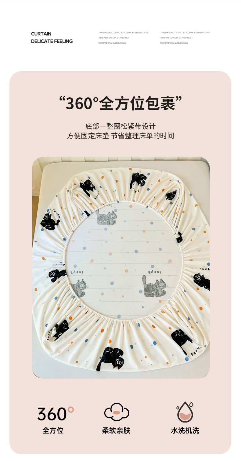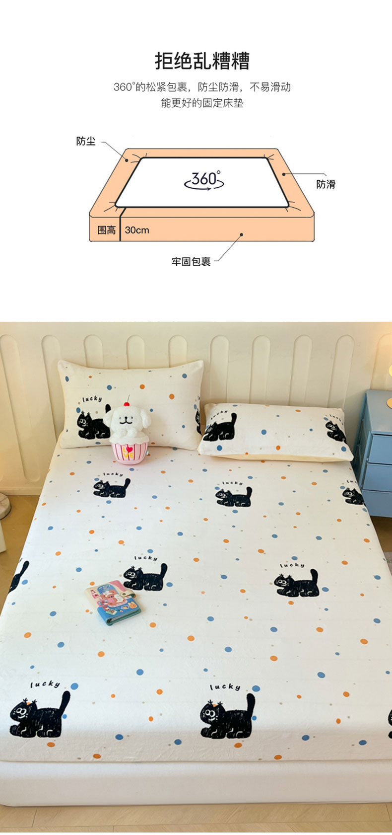 星座家纺 2025新款小清新牛奶绒单床笠 炫酷小猫