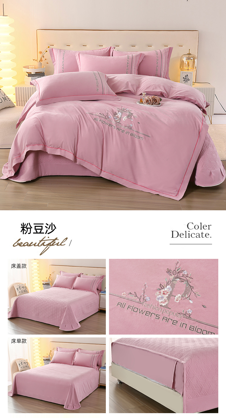 当前位置: 91家纺网 > 商品网购 > 床品套件 > 四件套 > 其它四件套 > OL家纺 2024新款磨毛暖绒床盖夹棉四件套刺绣轻奢风 粉豆沙