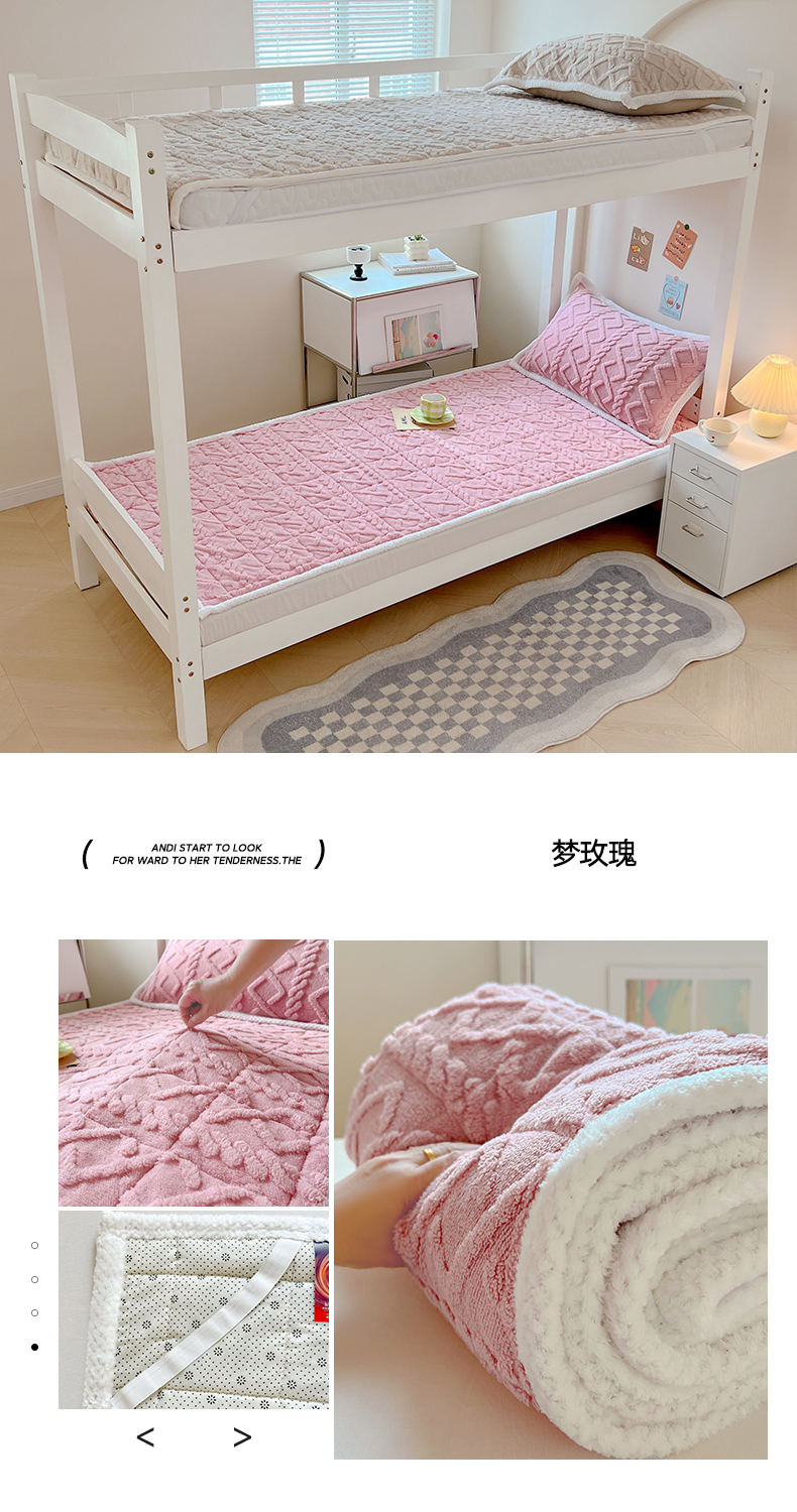 贝拉梦家纺 2024新款塔肤绒牛奶绒纯色学生宿舍夹棉软床垫子护床垫 梦玫瑰