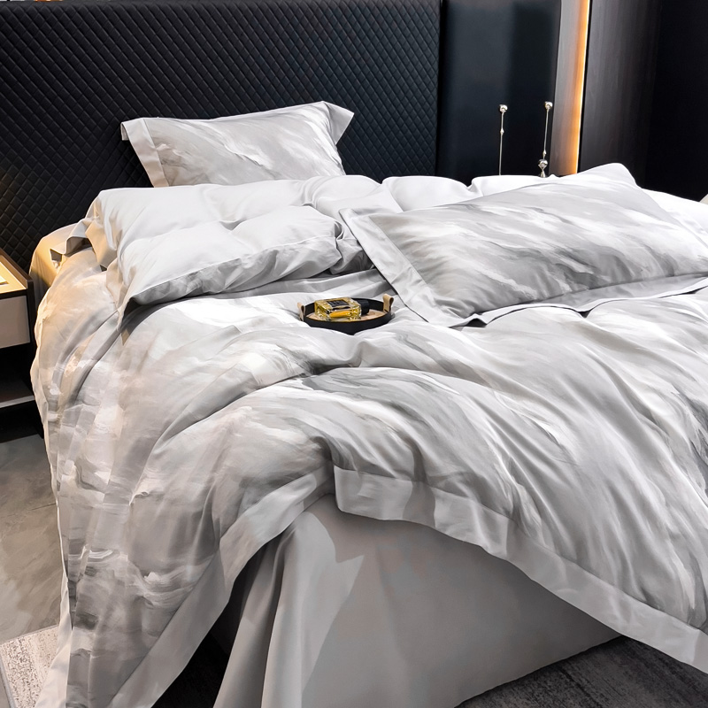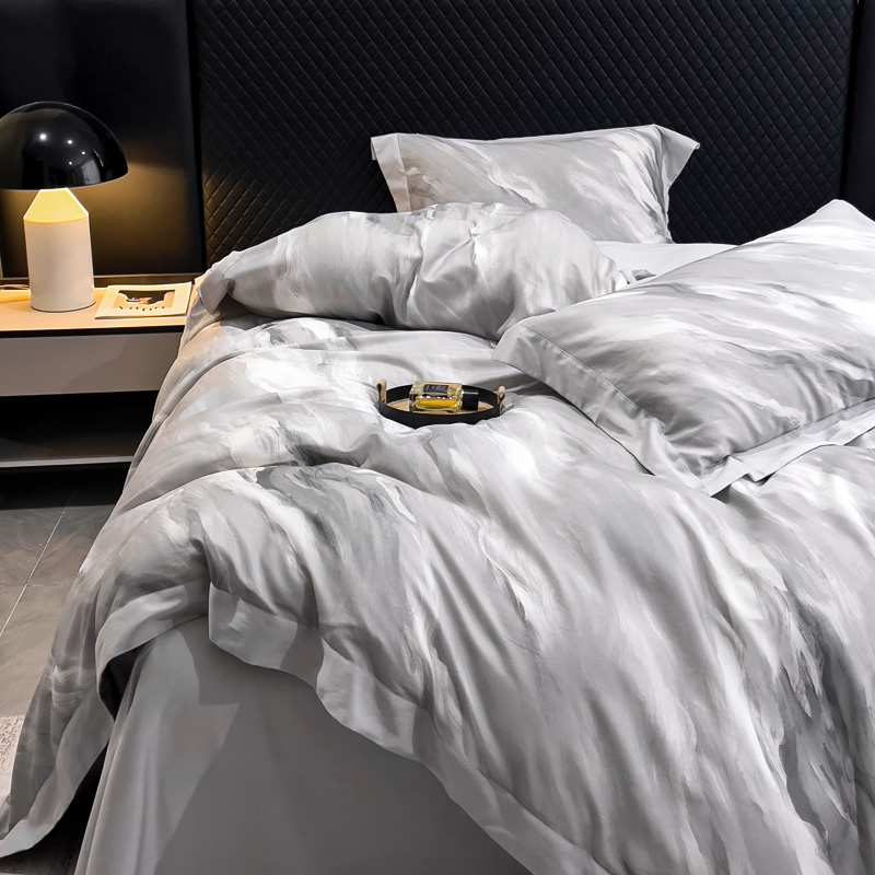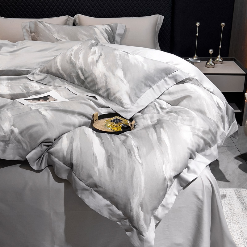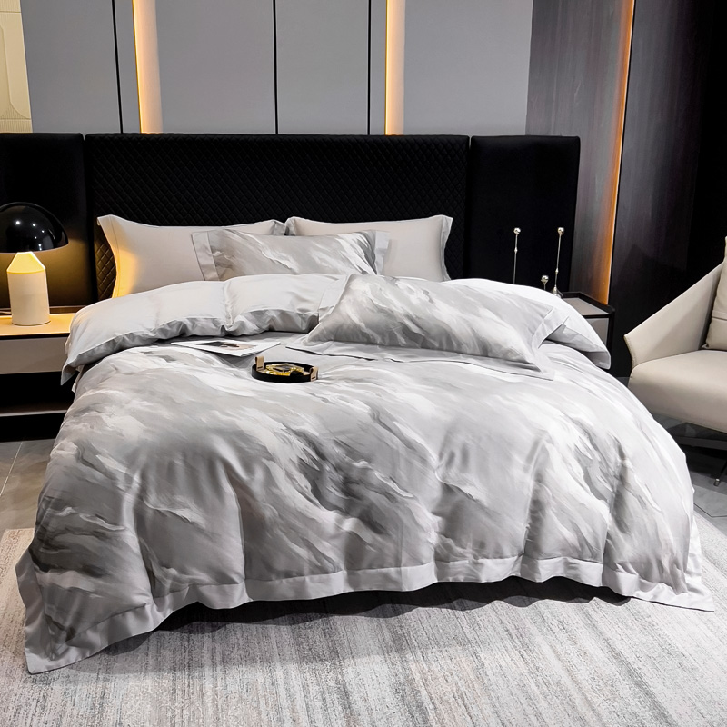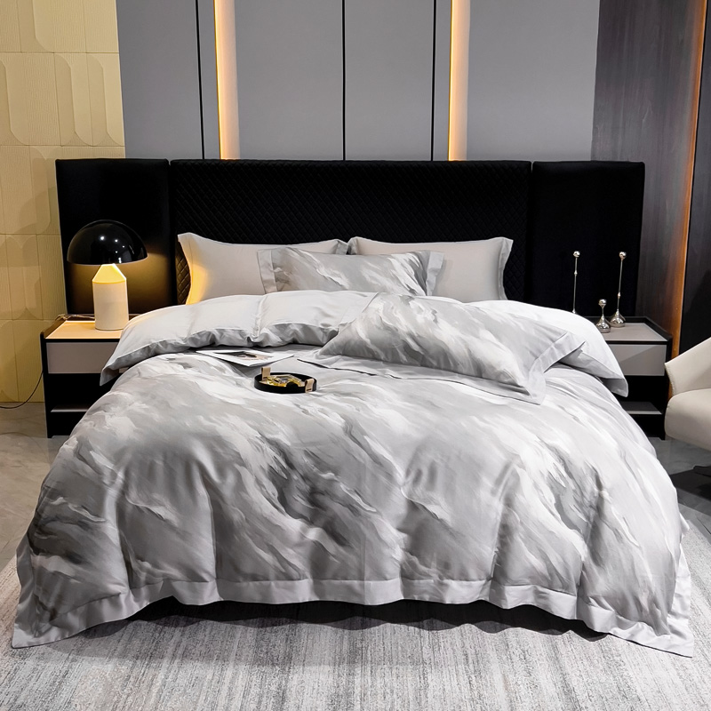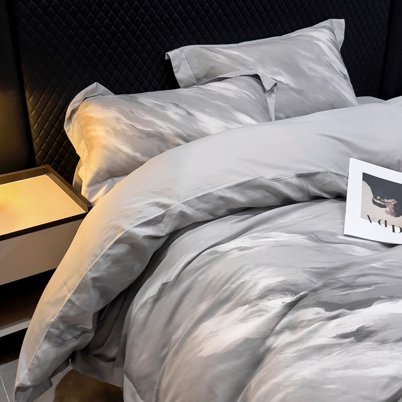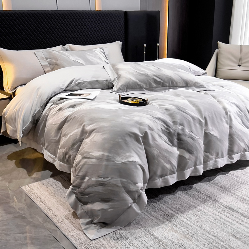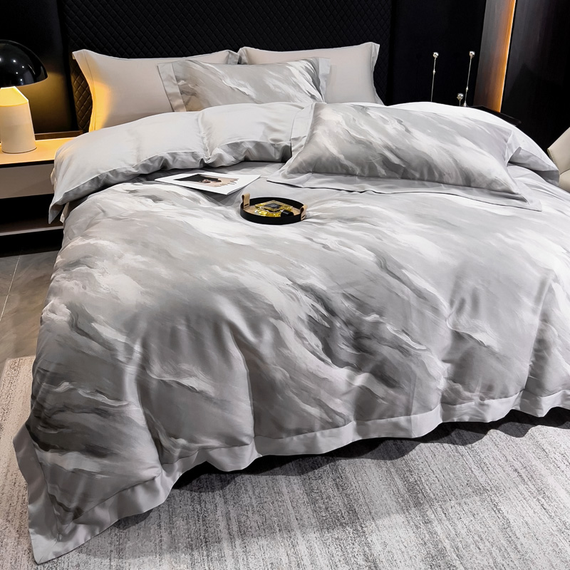 商品名称:氧家 2024新款数码印花天丝磨毛艾阳绒四件套 云汉灰