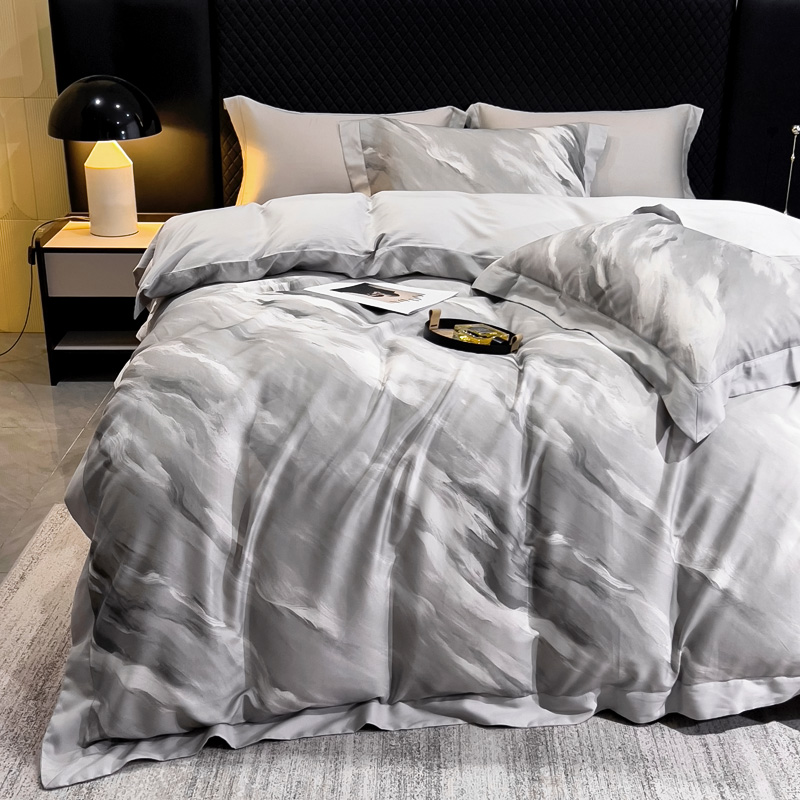 氧家 2024新款数码印花天丝磨毛艾阳绒四件套 云汉灰