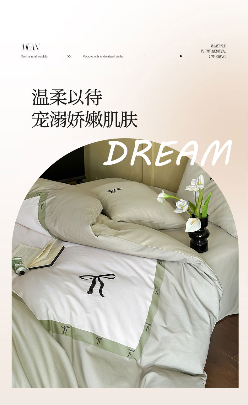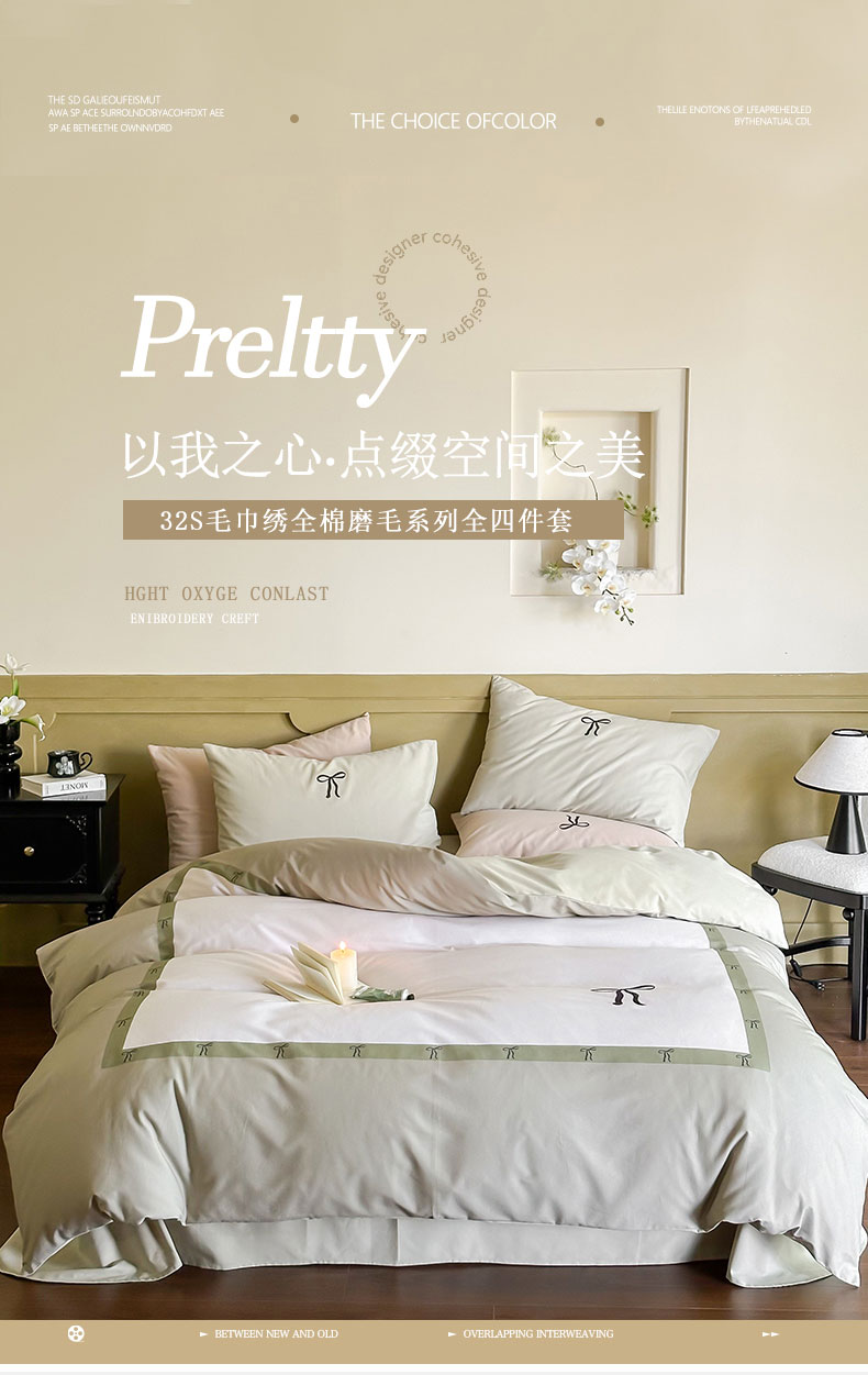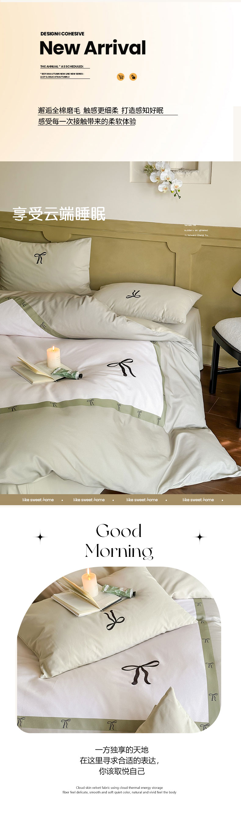 当前位置: 91家纺网 > 商品网购 > 床品套件 > 四件套 > 磨毛活性四件套 > 2024新款全棉磨毛数码印花绣花四件套-情书 情书绿