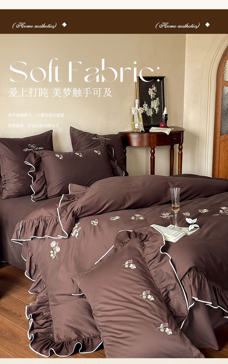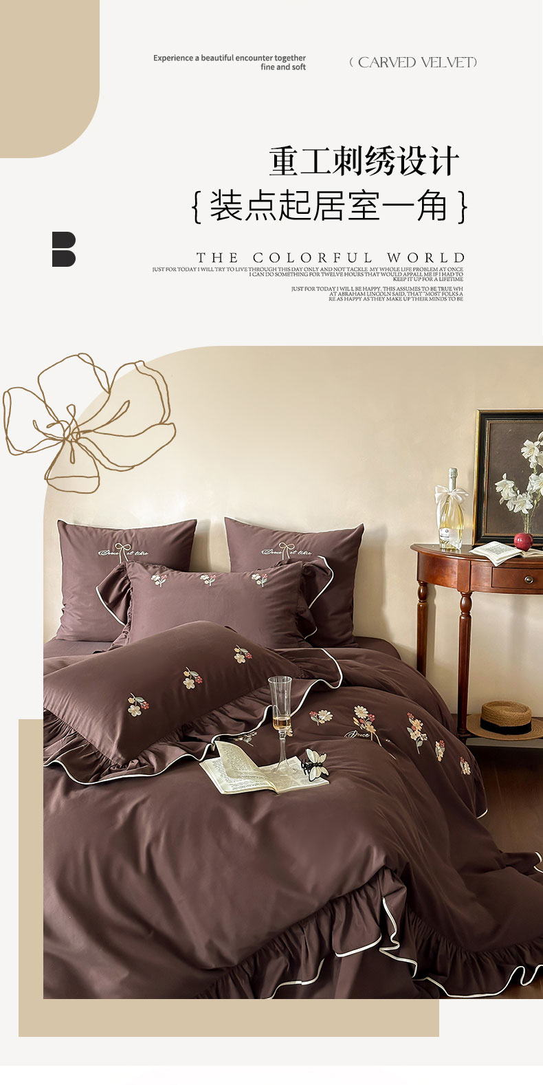 2024新款50s磨毛绣花花边款四件套 小资生活