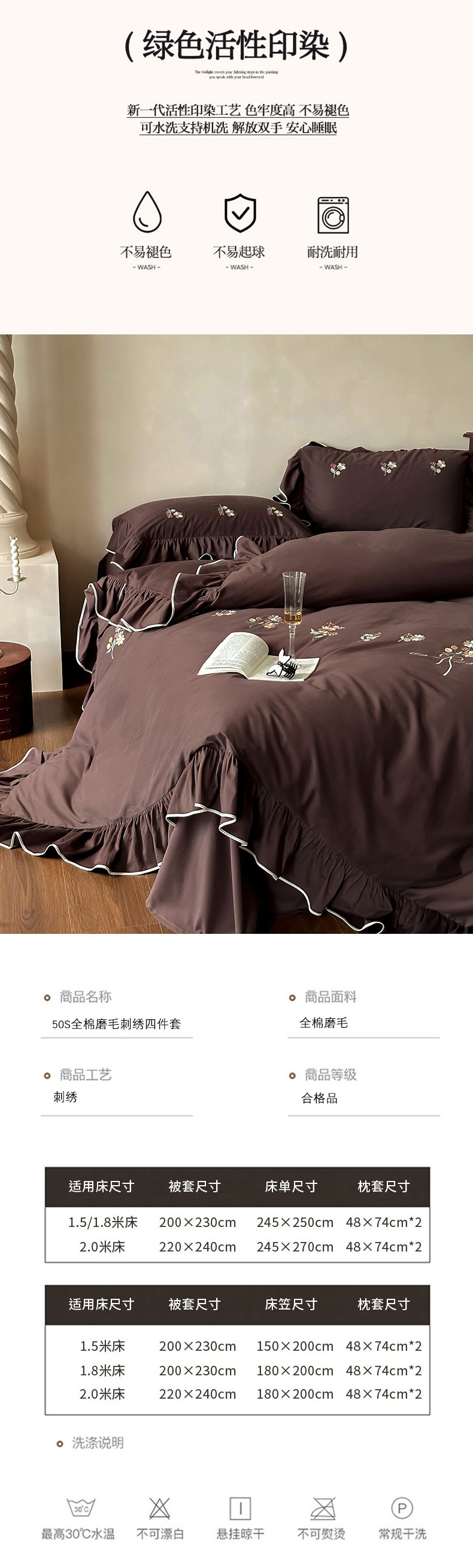 商品名称:2024新款50s磨毛绣花花边款四件套 小资生活