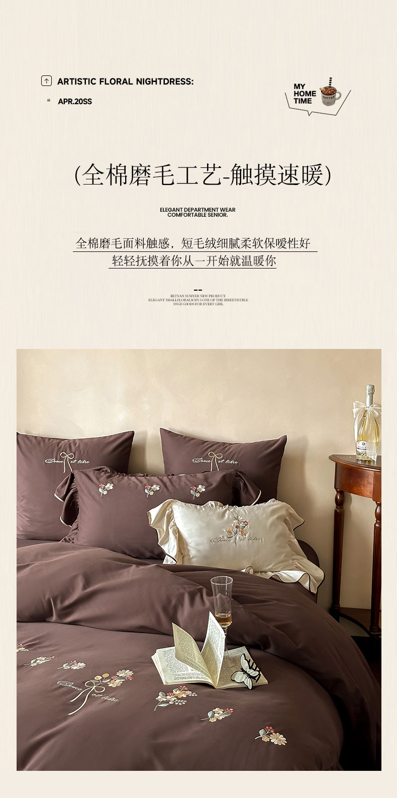 (总)FORTWO家纺原创设计(FOR TWO家纺) 2025新款230克牛奶绒绣花小清新四件套,咖啡猫,小萌兔