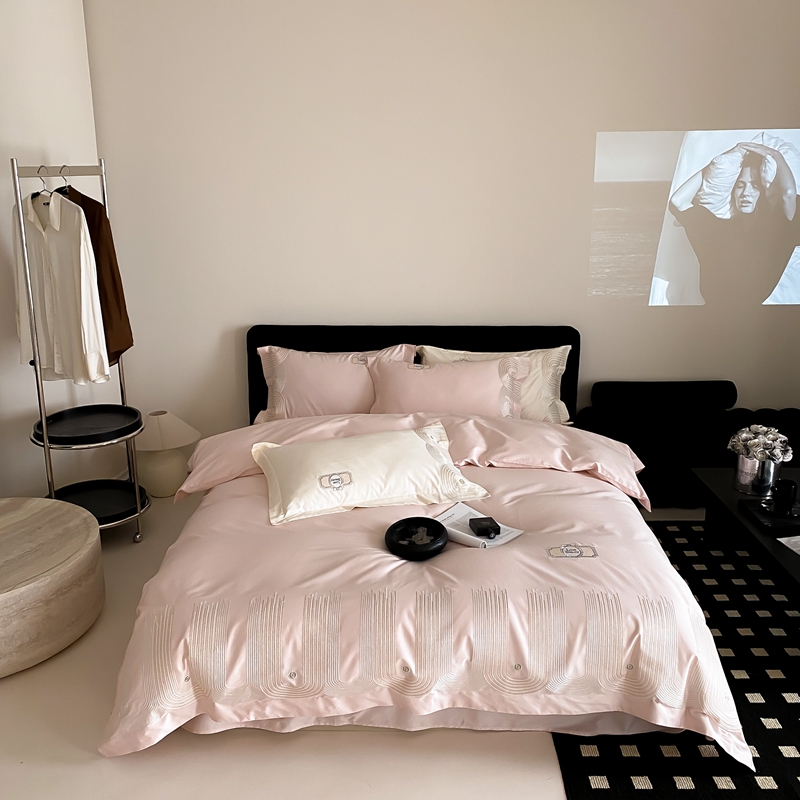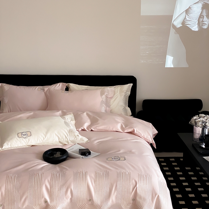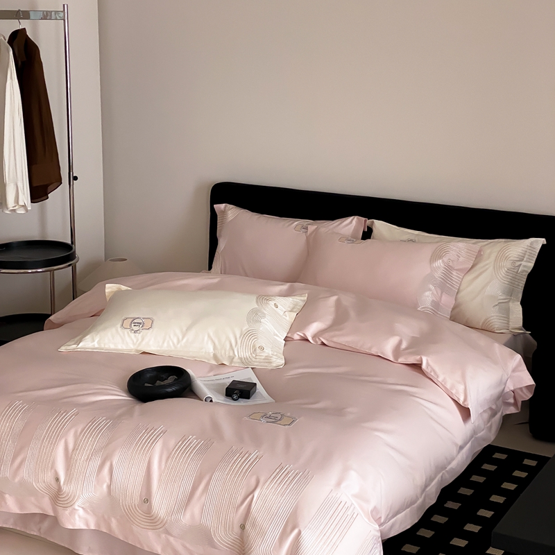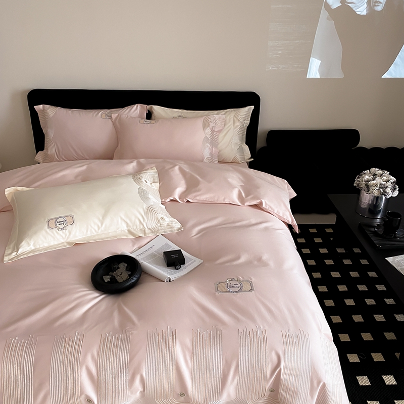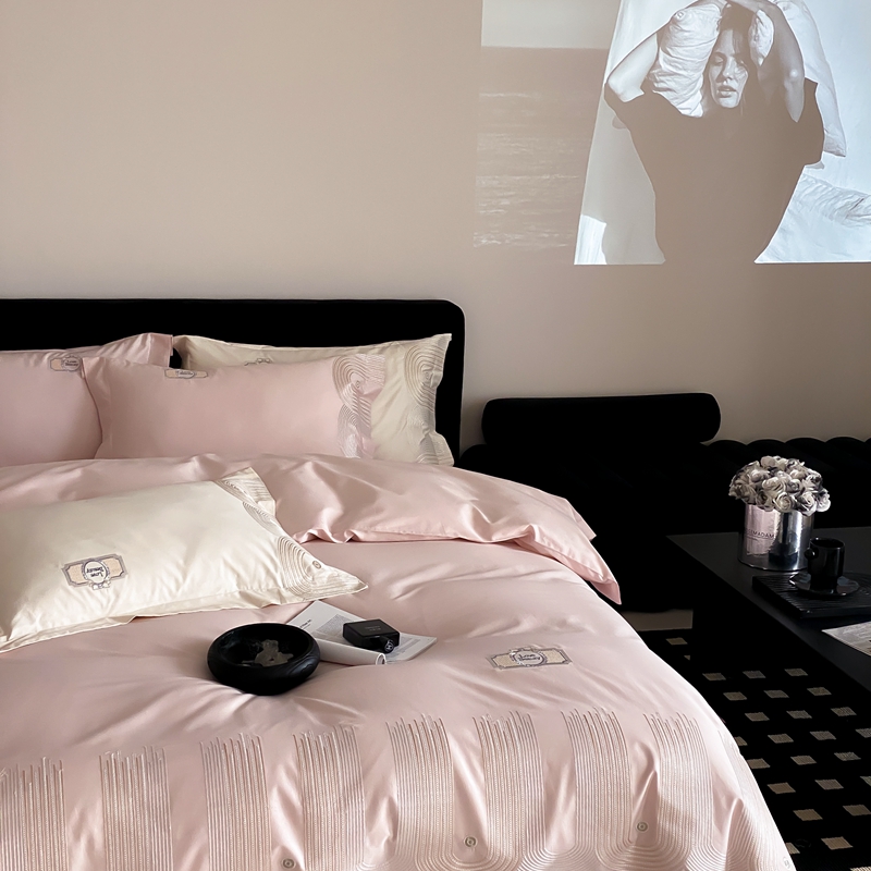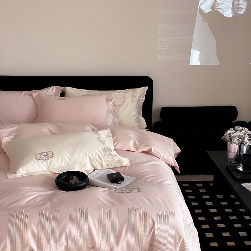 商品名称:馨蕊家居 2024新款100S高奢简约长绒棉系列四件套-朵芙 朵芙-初夏粉