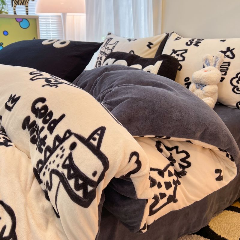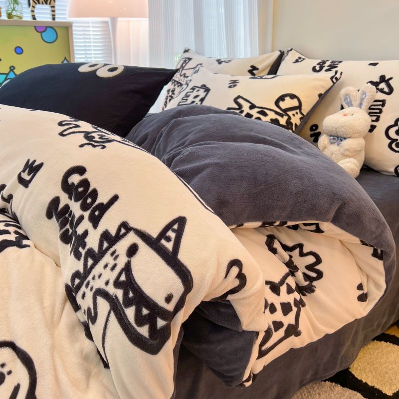 (总)HL原创 2025新款兔毛绒单品被套单件被套,繁花,狗狗线条,焦糖爱心,洛可可,魔法学院,绅士,时尚斑马,晚霞,五彩缤纷,喜乐,自由-黑