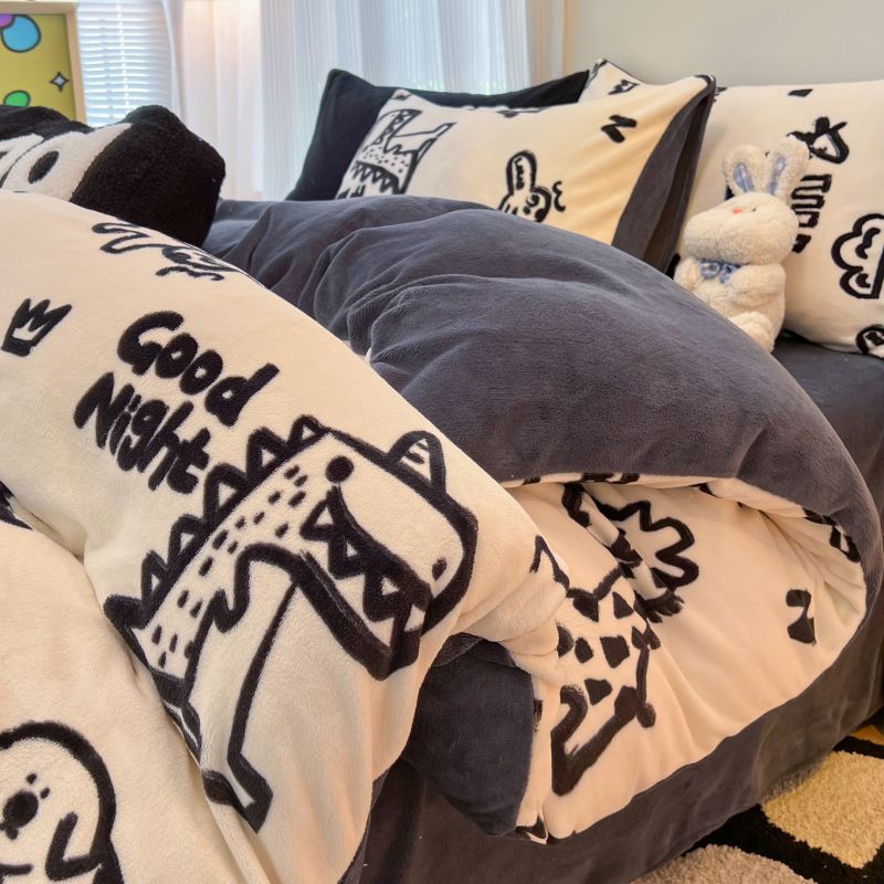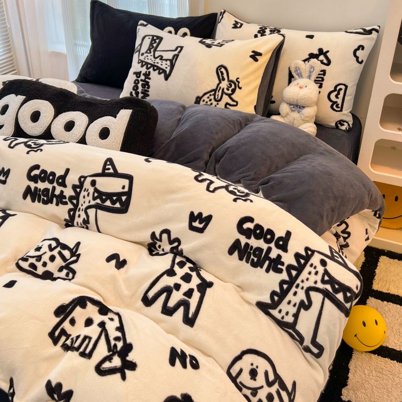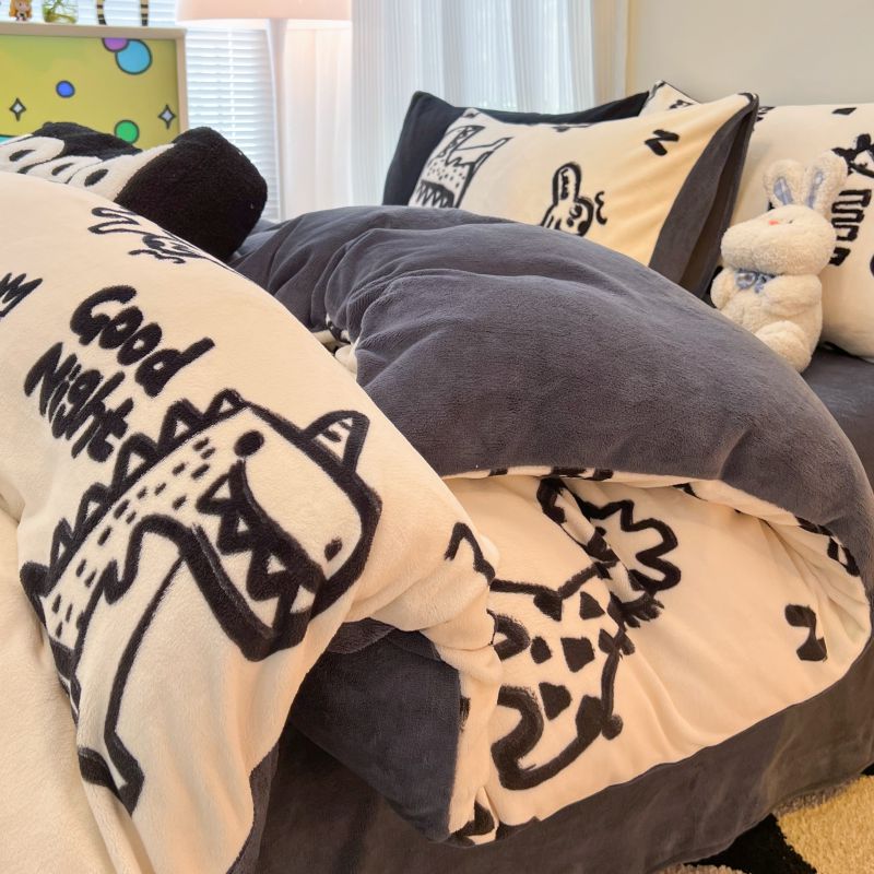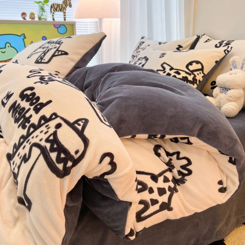 商品名称:2024新款原创白色小清新场景牛奶绒单被套 萌趣恐龙