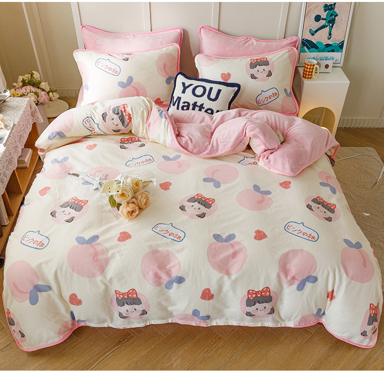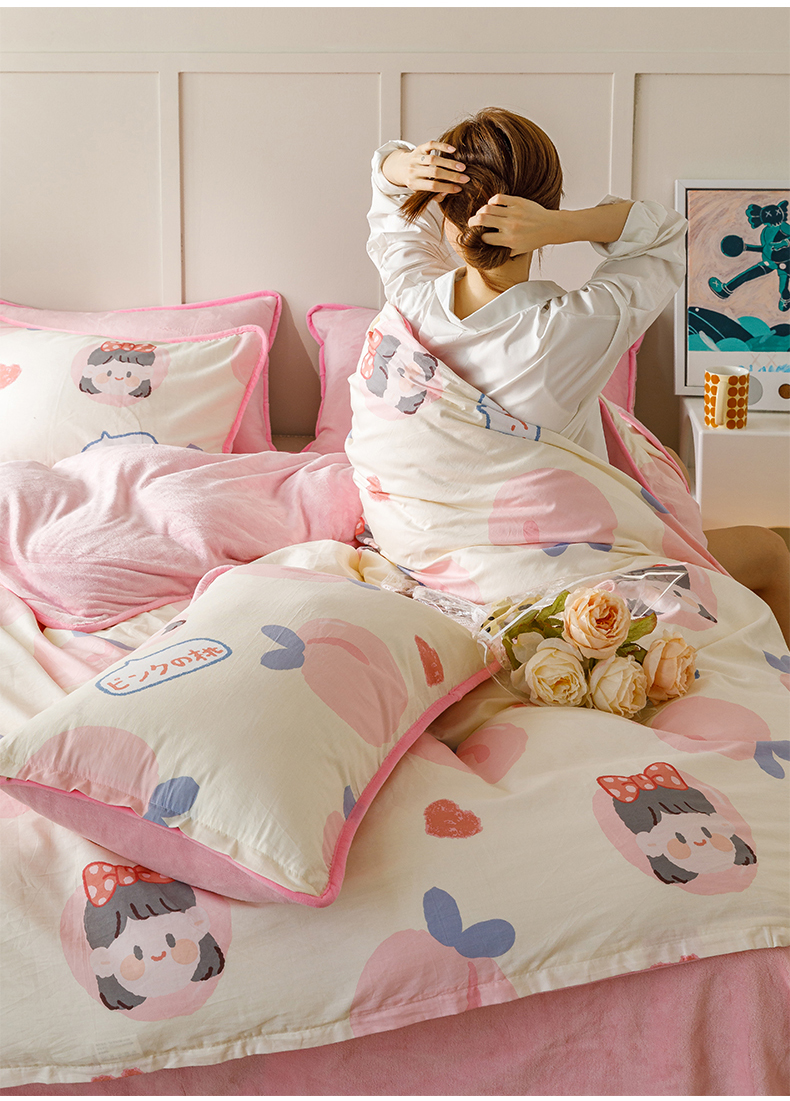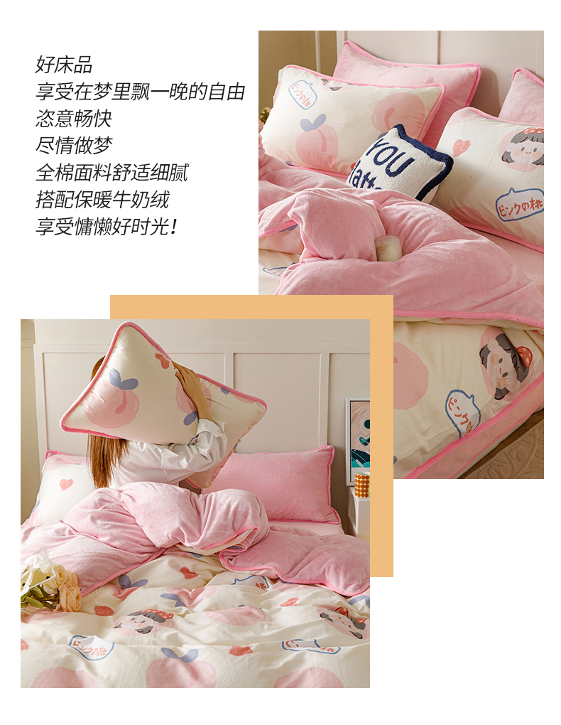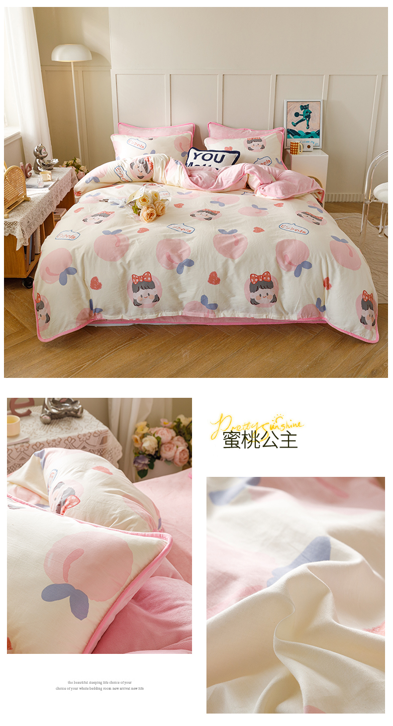 当前位置: 91家纺网 > 商品网购 > 床品套件 > 四件套 > 牛奶绒四件套 > 红粉佳人 2025新款棉加绒印花四件套 蜜桃公主