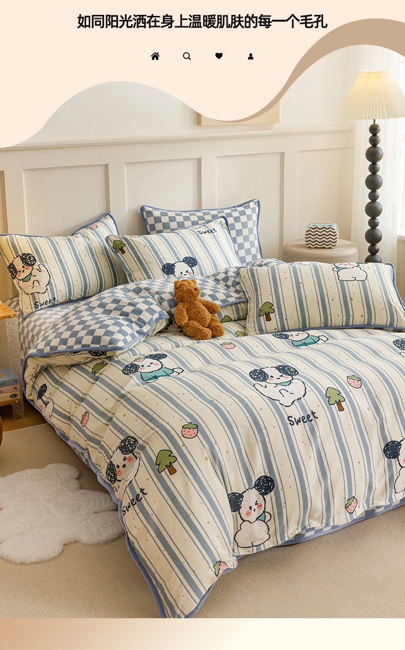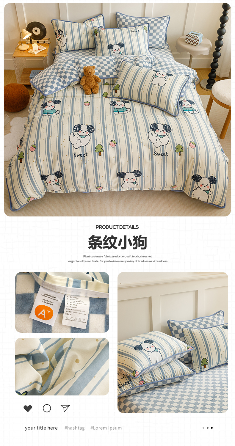 当前位置: 91家纺网 > 商品网购 > 床品套件 > 四件套 > 牛奶绒四件套 > 红粉佳人 2025新款棉加绒印花四件套 条纹小狗