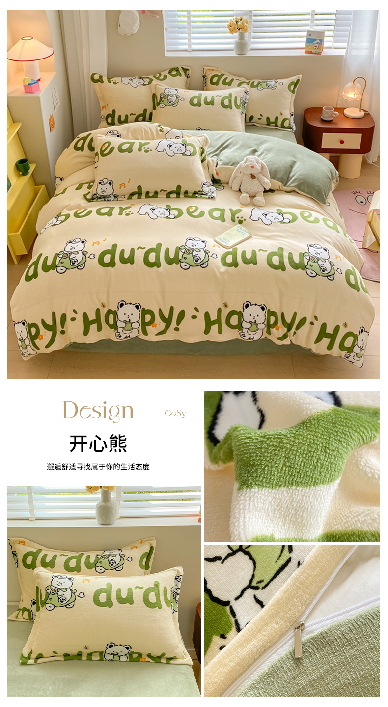 当前位置: 91家纺网 > 商品网购 > 床品套件 > 四件套 > 牛奶绒四件套 > 梦之岛 2024新款高克重小清新印花牛奶绒保暖四件套 开心熊