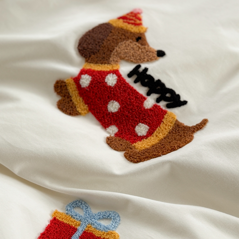(总)柚子YOUTH 2025新款全棉纯棉工艺款13070贴布绣四件套,爱心小象,毛绒小狗,蘑菇女孩,星星法师