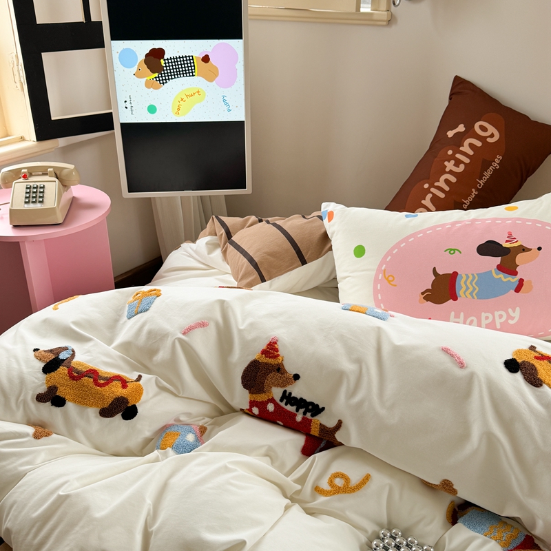 商品名称:柚子YOUTH 2024秋冬新品全棉磨毛款四件套 磨毛款-腊肠狗