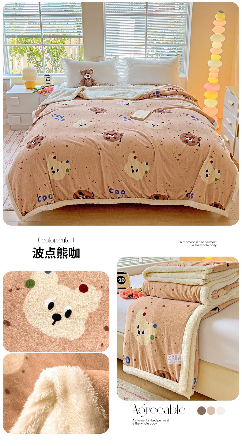 鑫喜莱家纺 2024新款牛奶绒羊羔绒盖毯毛毯毯子午睡毯 波点熊咖