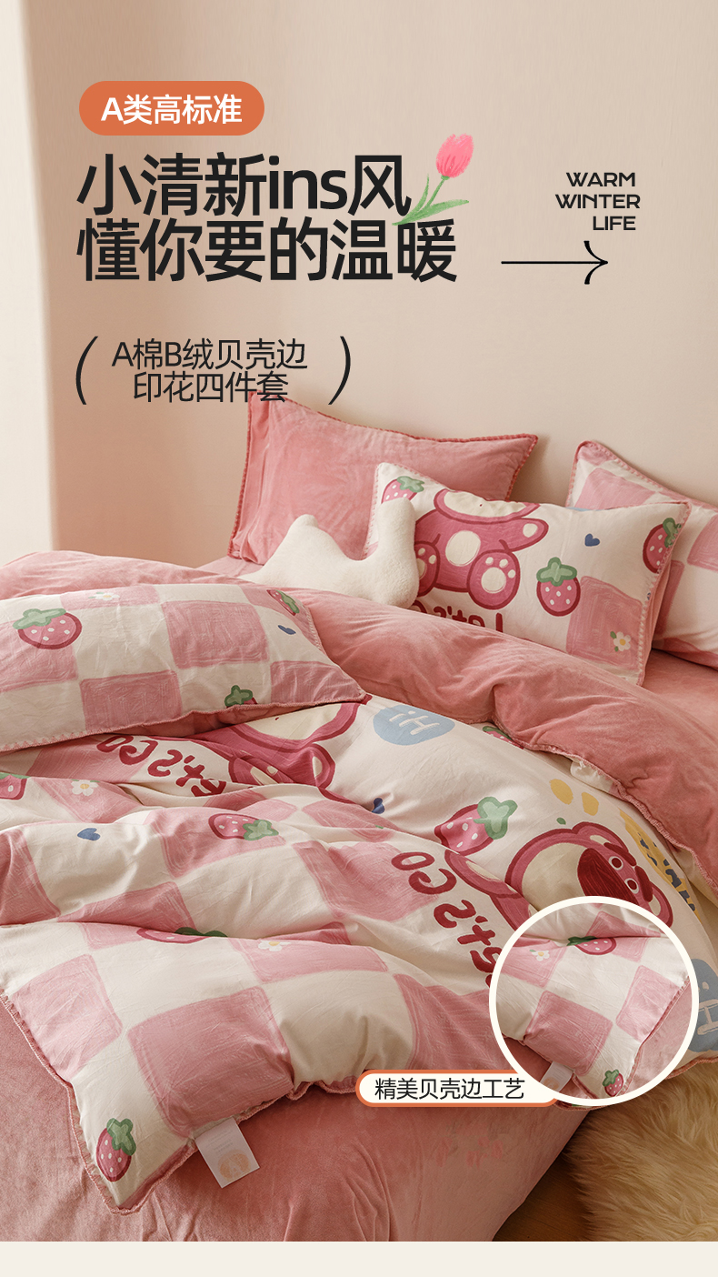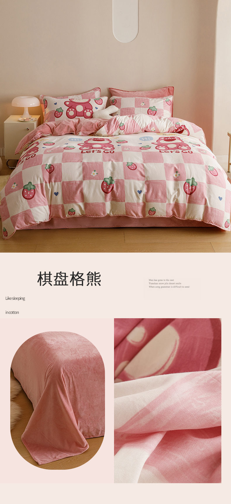 当前位置: 91家纺网 > 商品网购 > 床品套件 > 四件套 > 牛奶绒四件套 > 2025新款三角针贝壳边棉加牛奶绒工艺款四件套 棋盘格熊