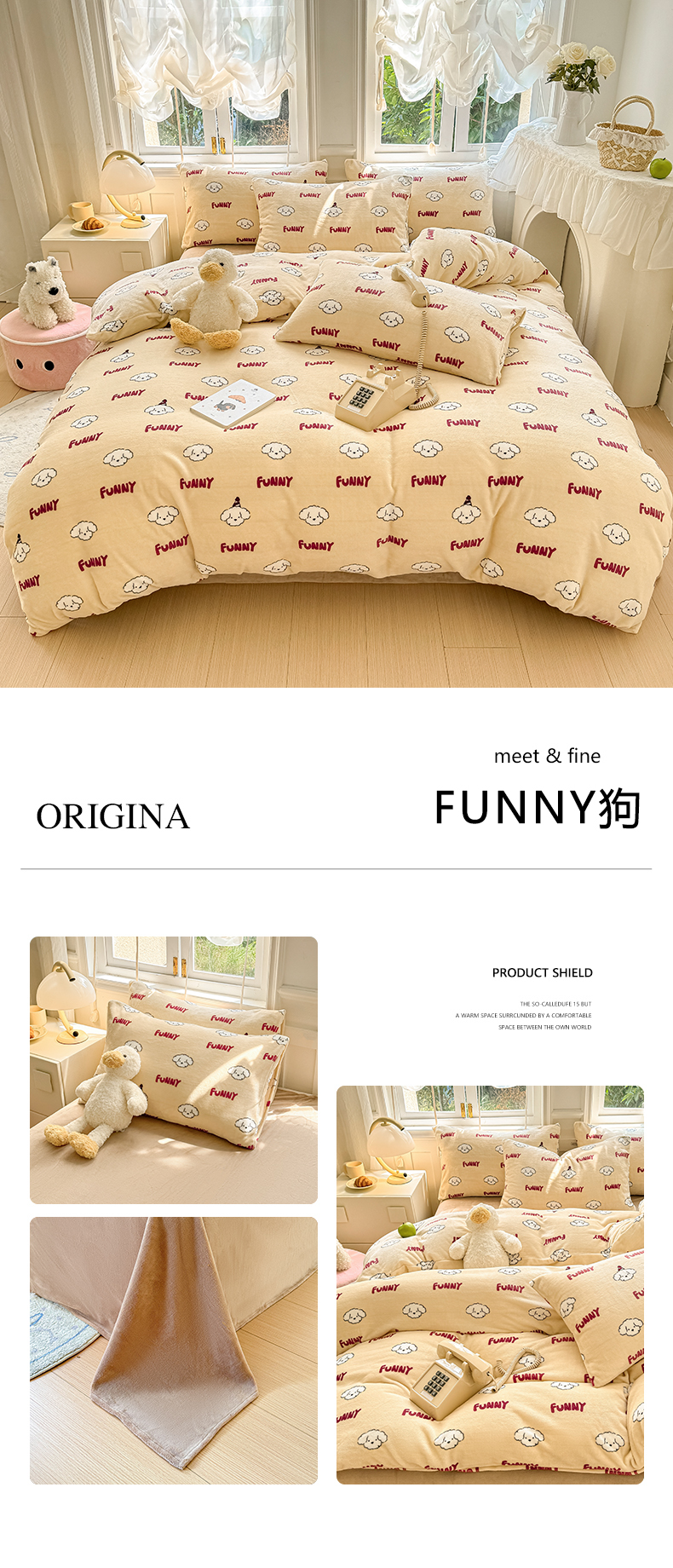 当前位置: 91家纺网 > 商品网购 > 床品套件 > 四件套 > 牛奶绒四件套 > 2025新款小清新双面牛奶绒四件套 funny狗