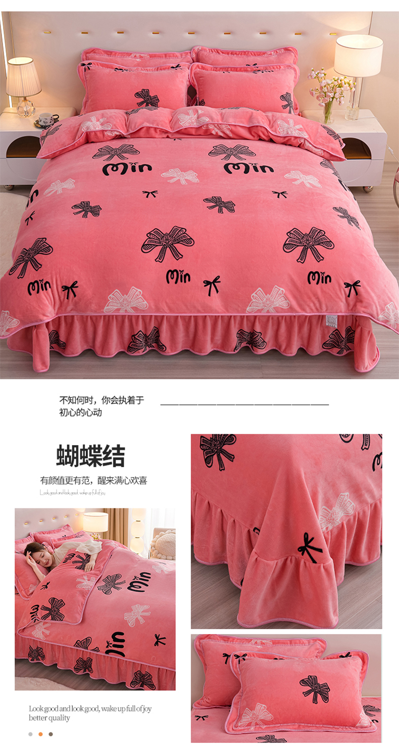 阿亮家居 2024新款8.5斤保暖牛奶绒金貂绒床裙款四件套 蝴蝶结