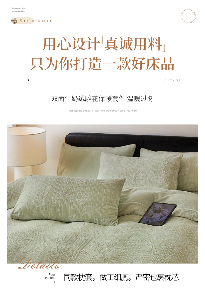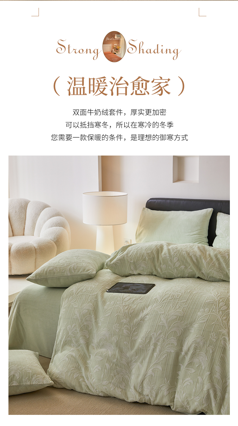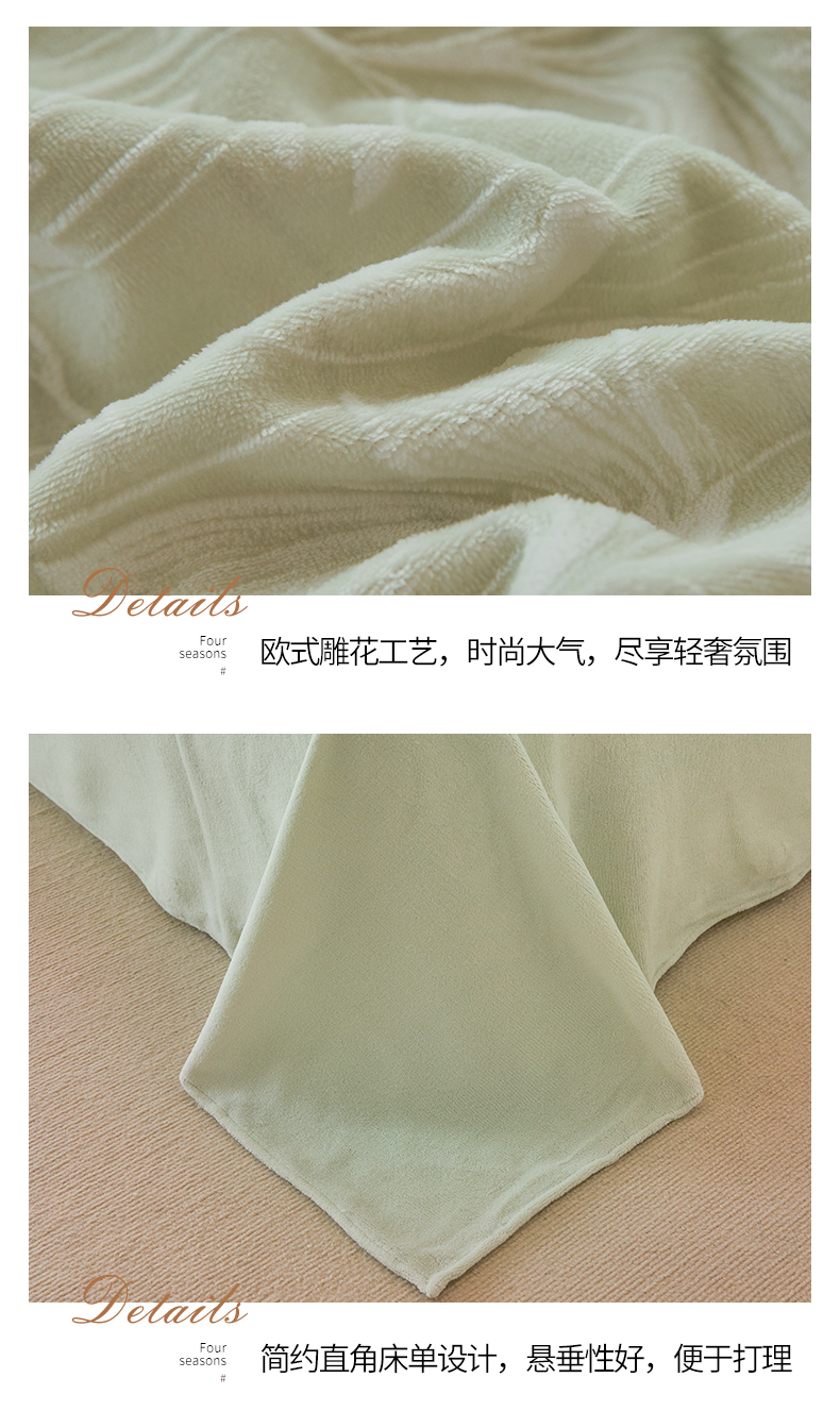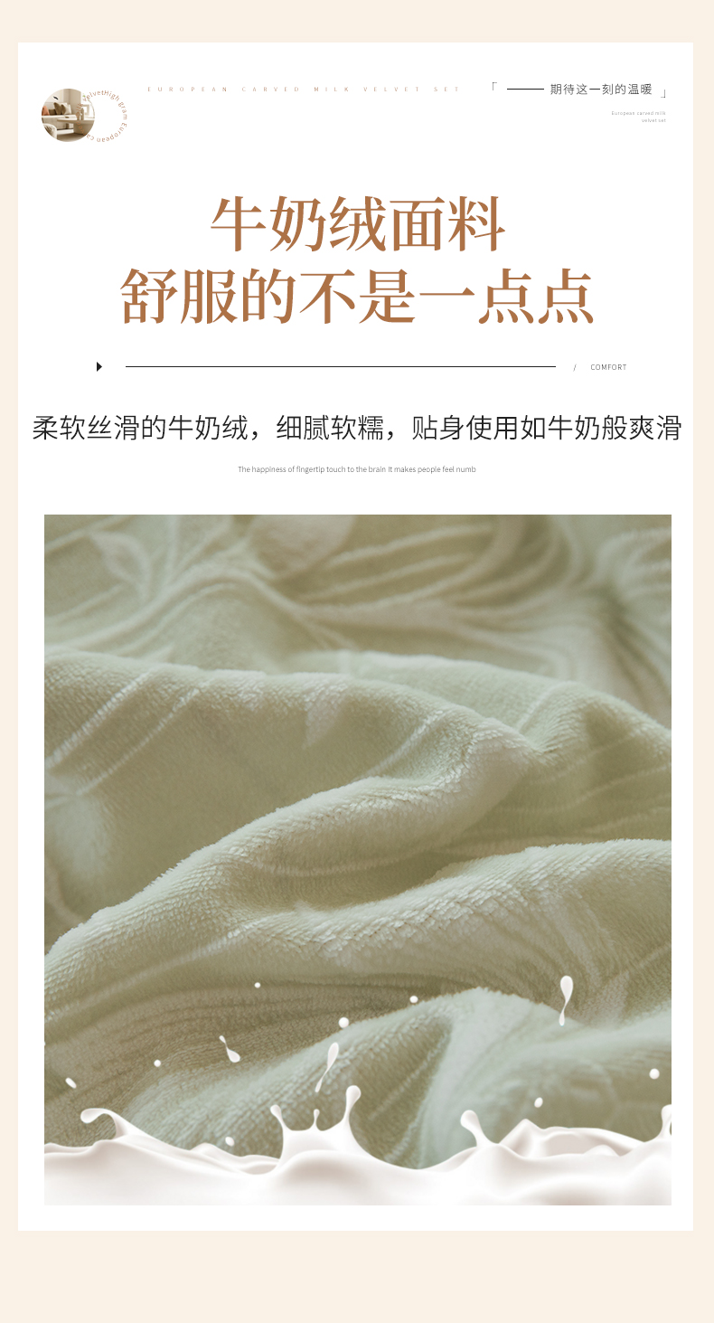 商品名称:优彩 2025新款雕花牛奶绒四件套烂花牛奶绒四件套 若叶-浅荷绿