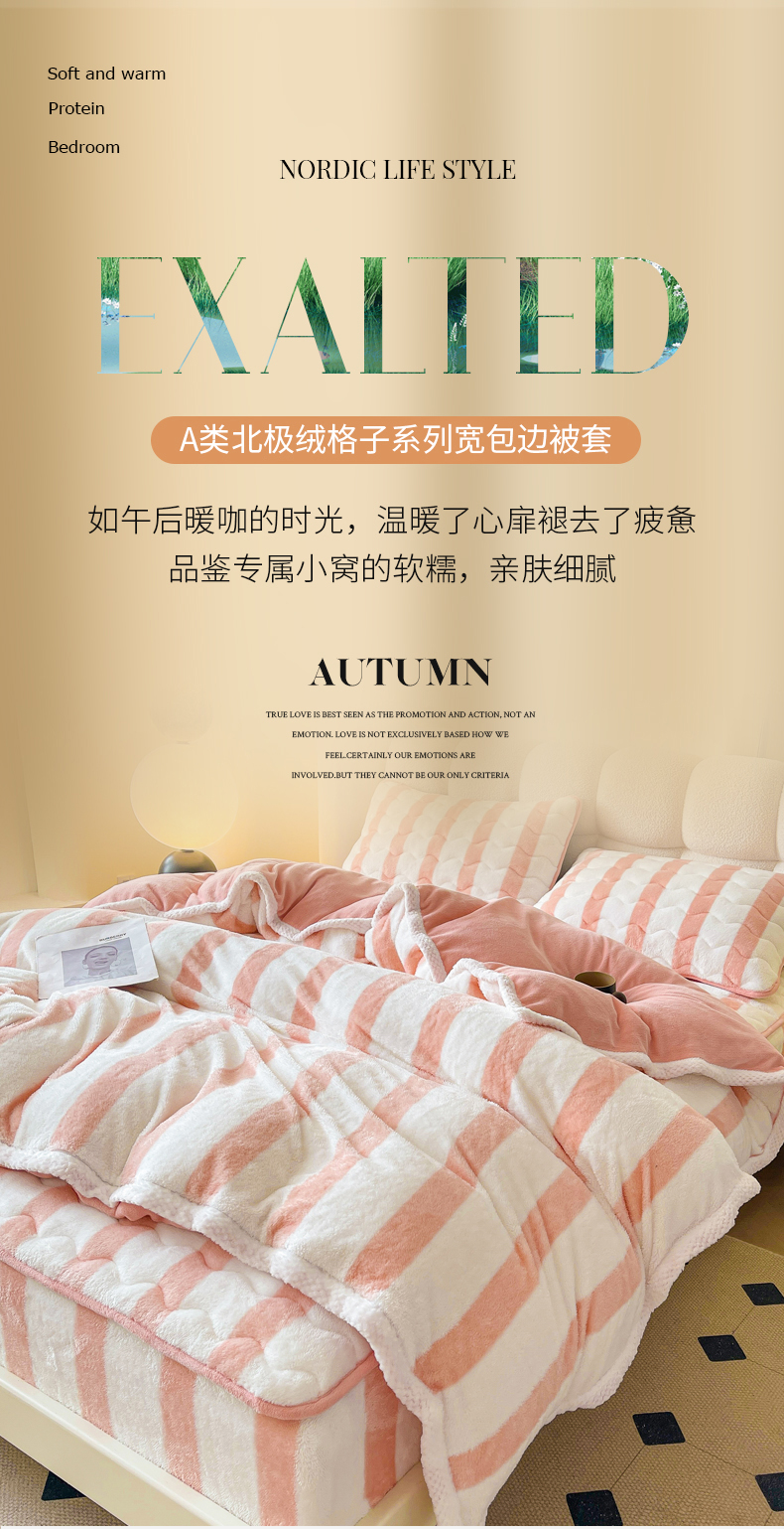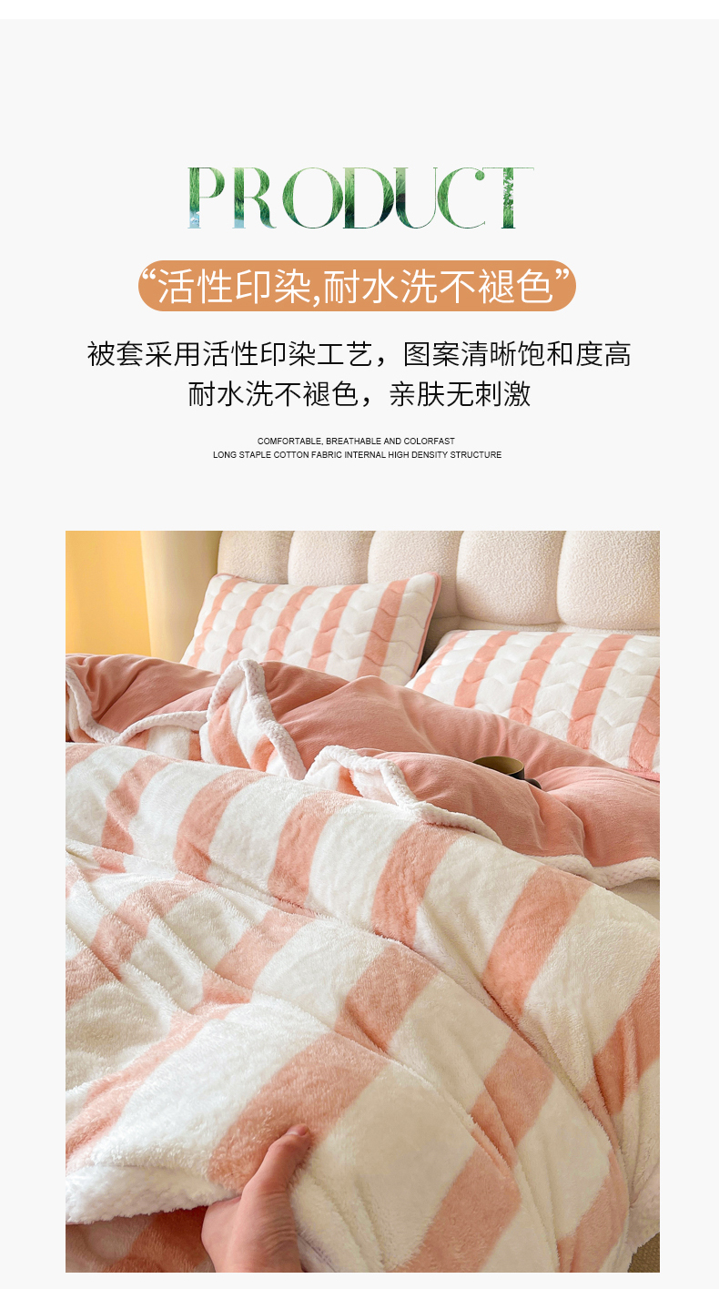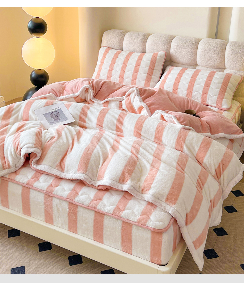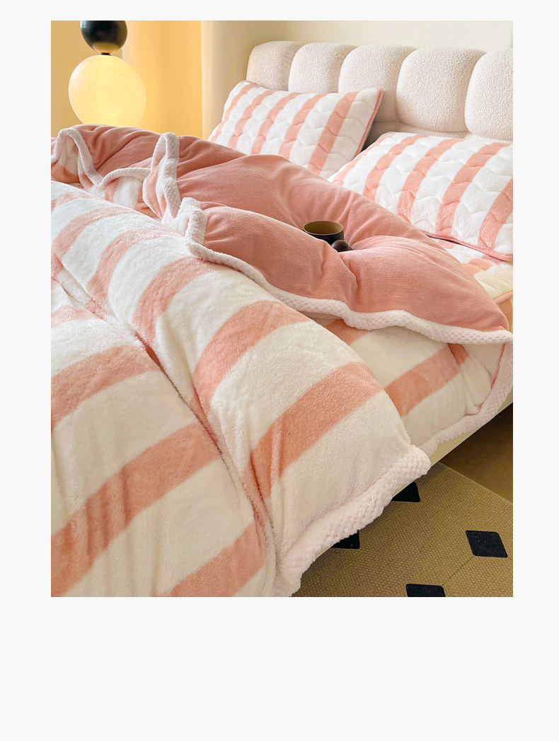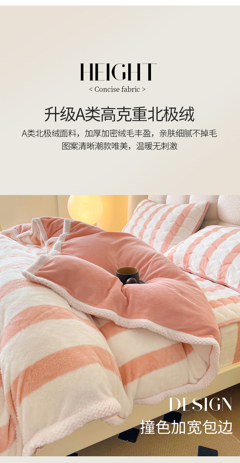 商品名称:2024新款A类北极绒格子-条纹系列宽包边加厚被套(暖光图) 条纹-粉玉