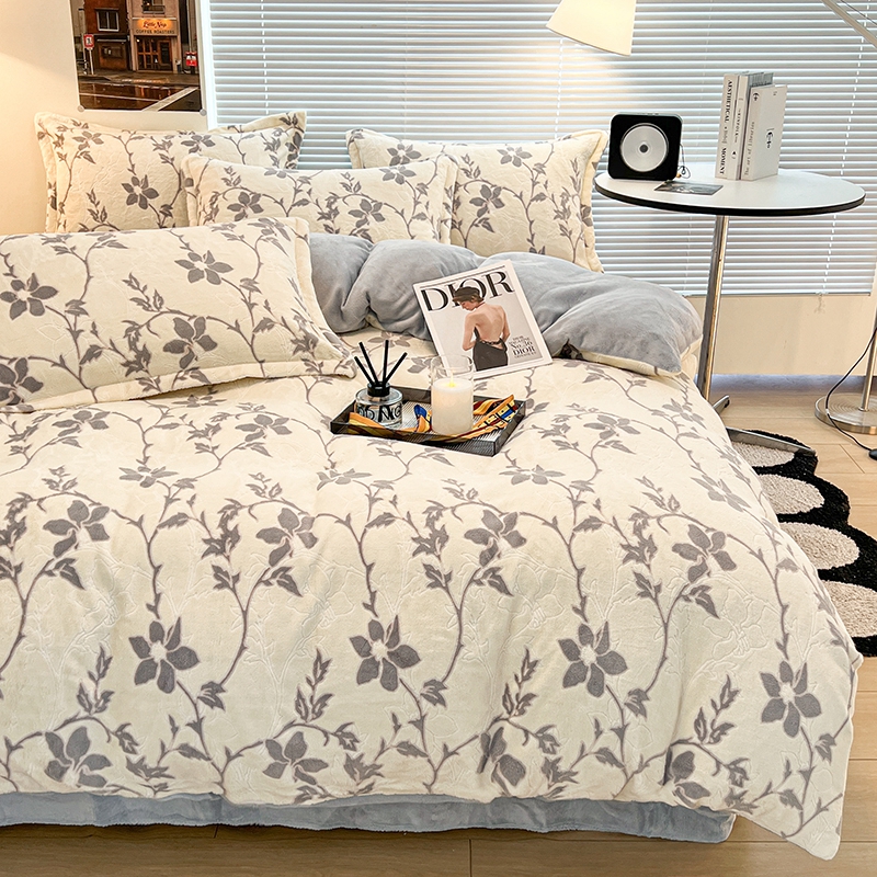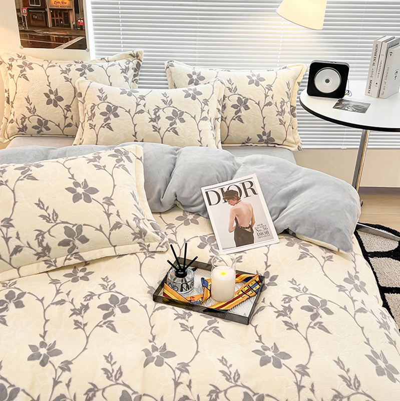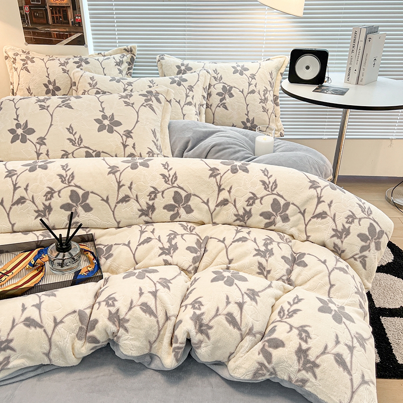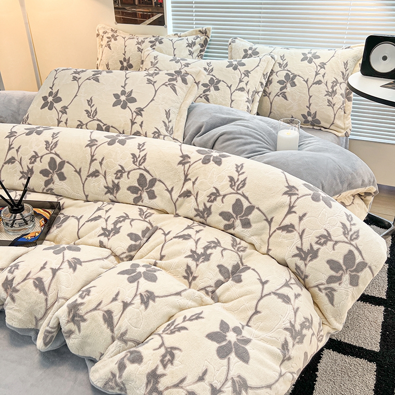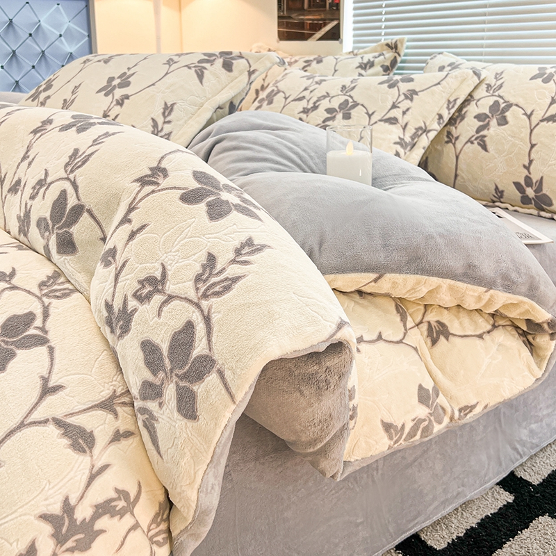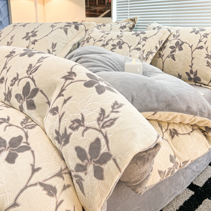 当前位置: 91家纺网 > 商品网购 > 床品套件 > 四件套 > 雕花绒四件套 > 慕尚 2025新款高克重保暖双色雕花绒四件套 藤蔓-米灰